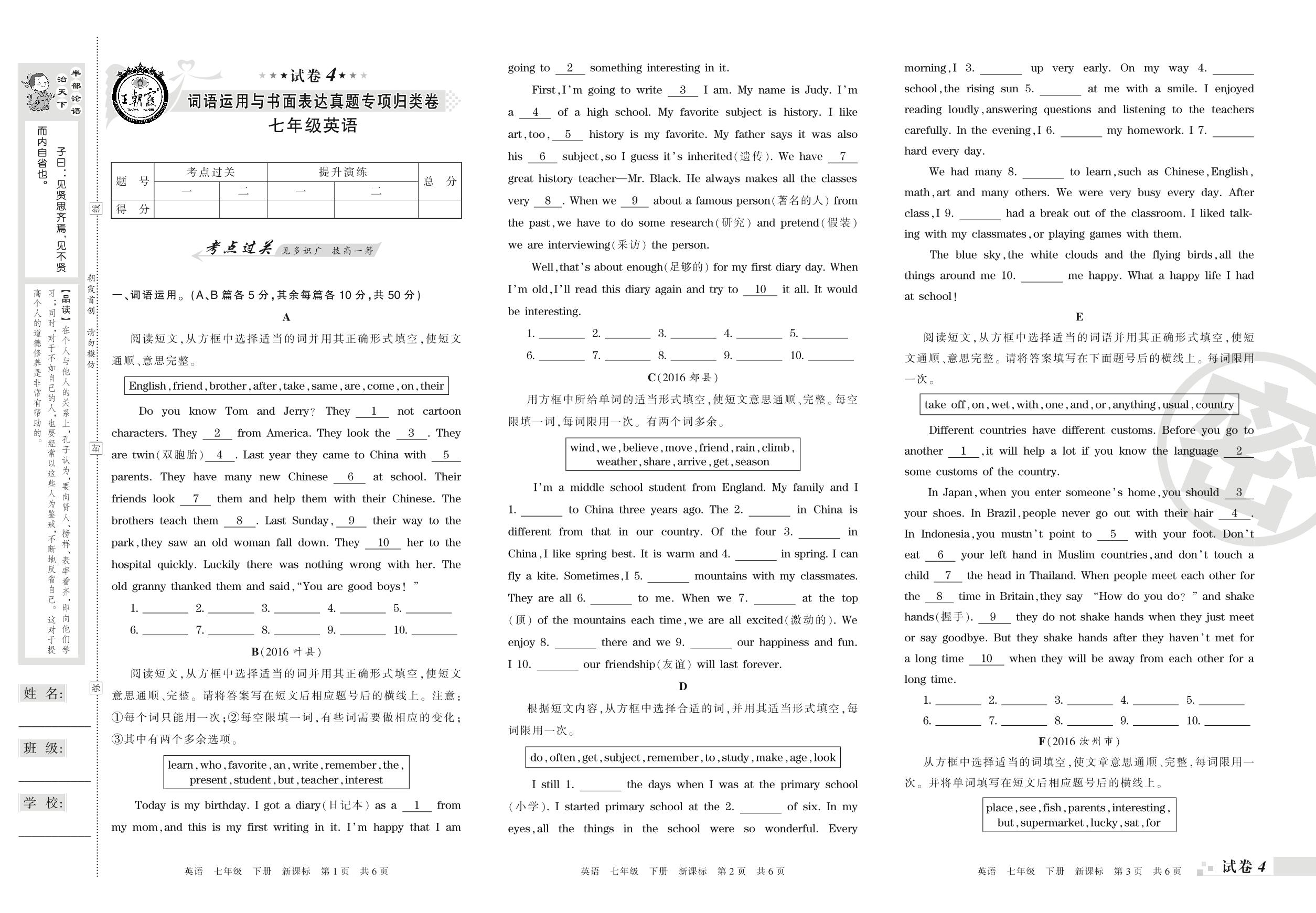 王朝霞期末专项卷——词语运用与书面表达真题专项归类卷七年级下册英语(新课版)【4】