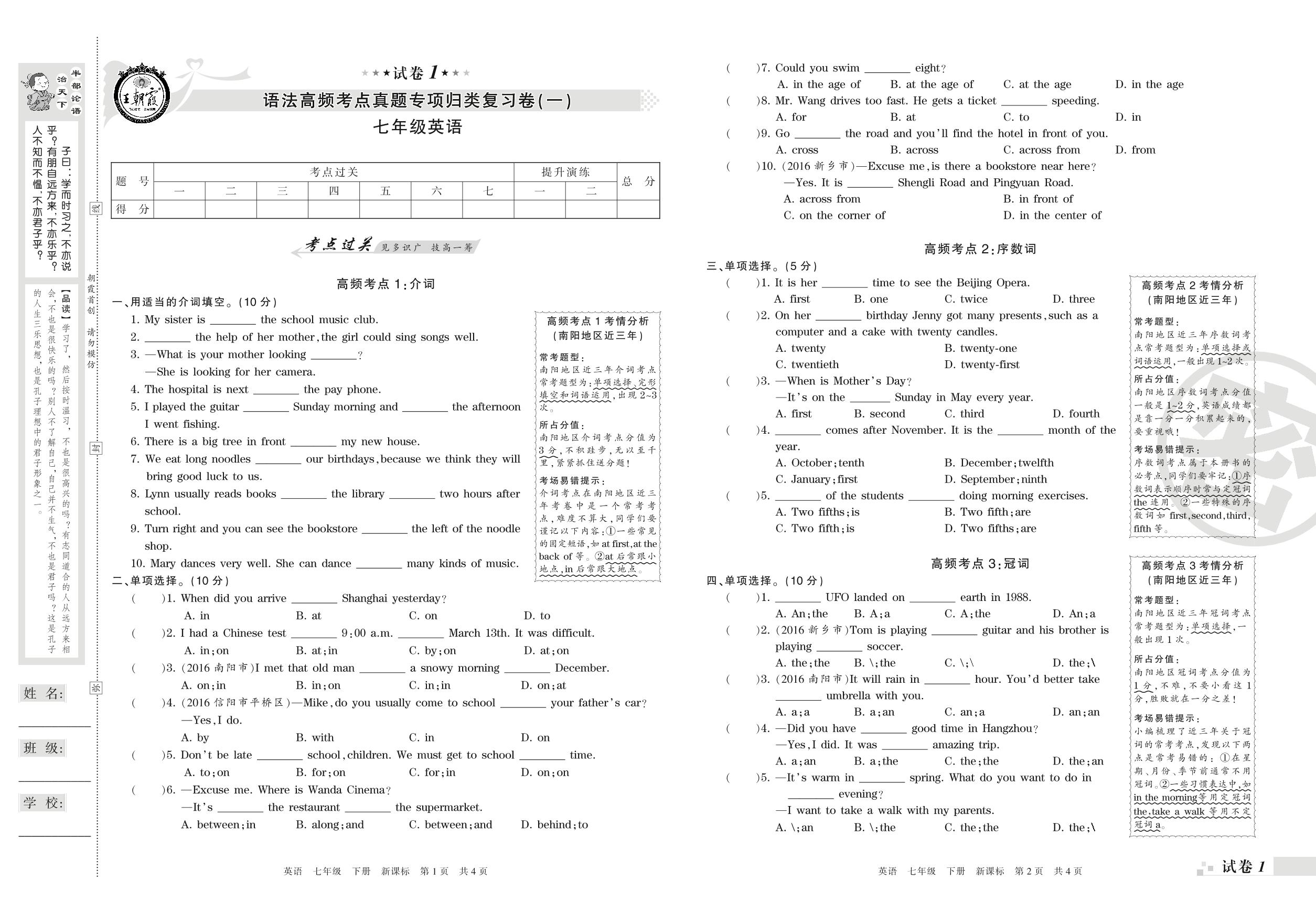七年级英语新课标版下册专项卷