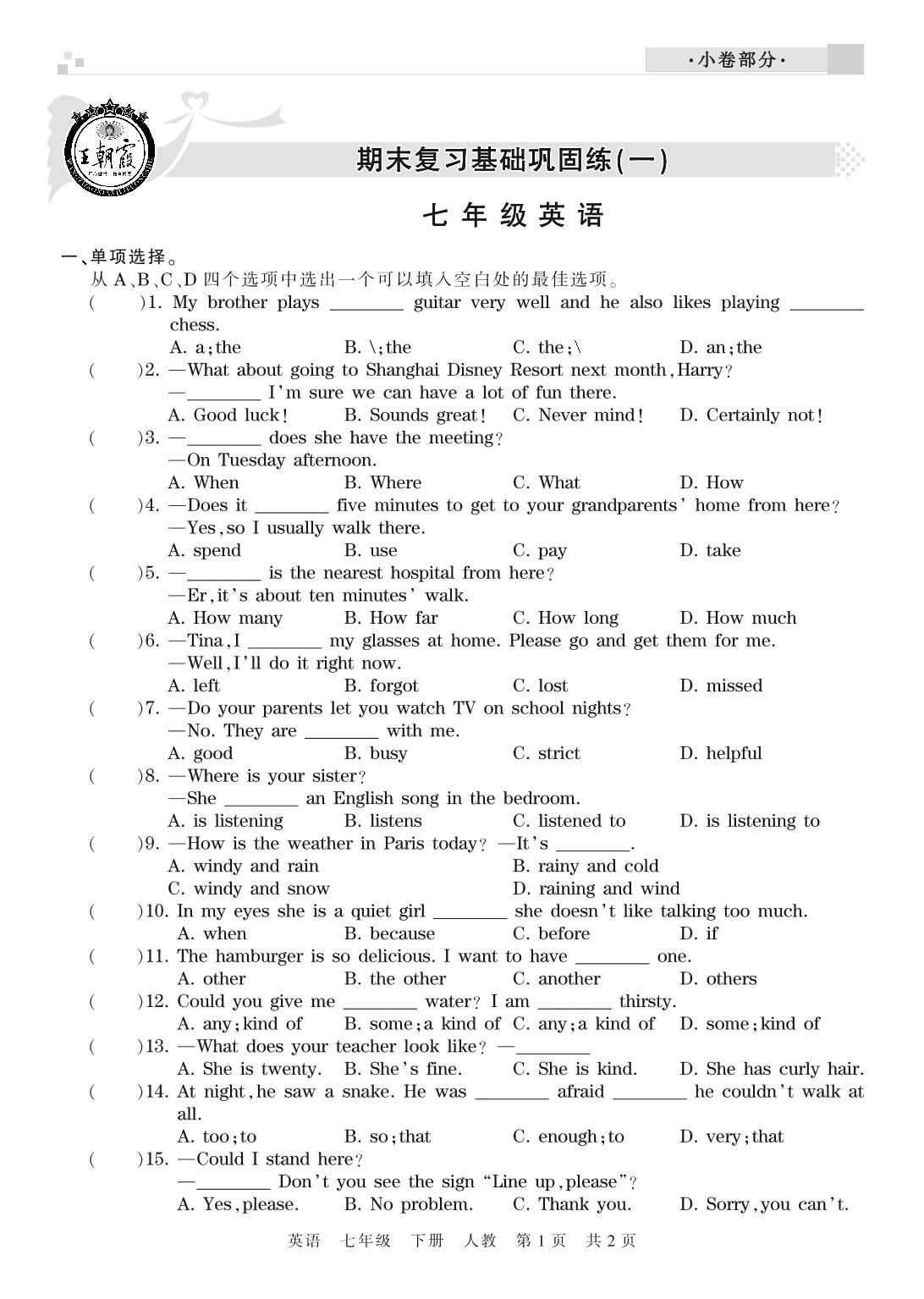王朝霞期末小卷七年级下册英语(人教版)【0】