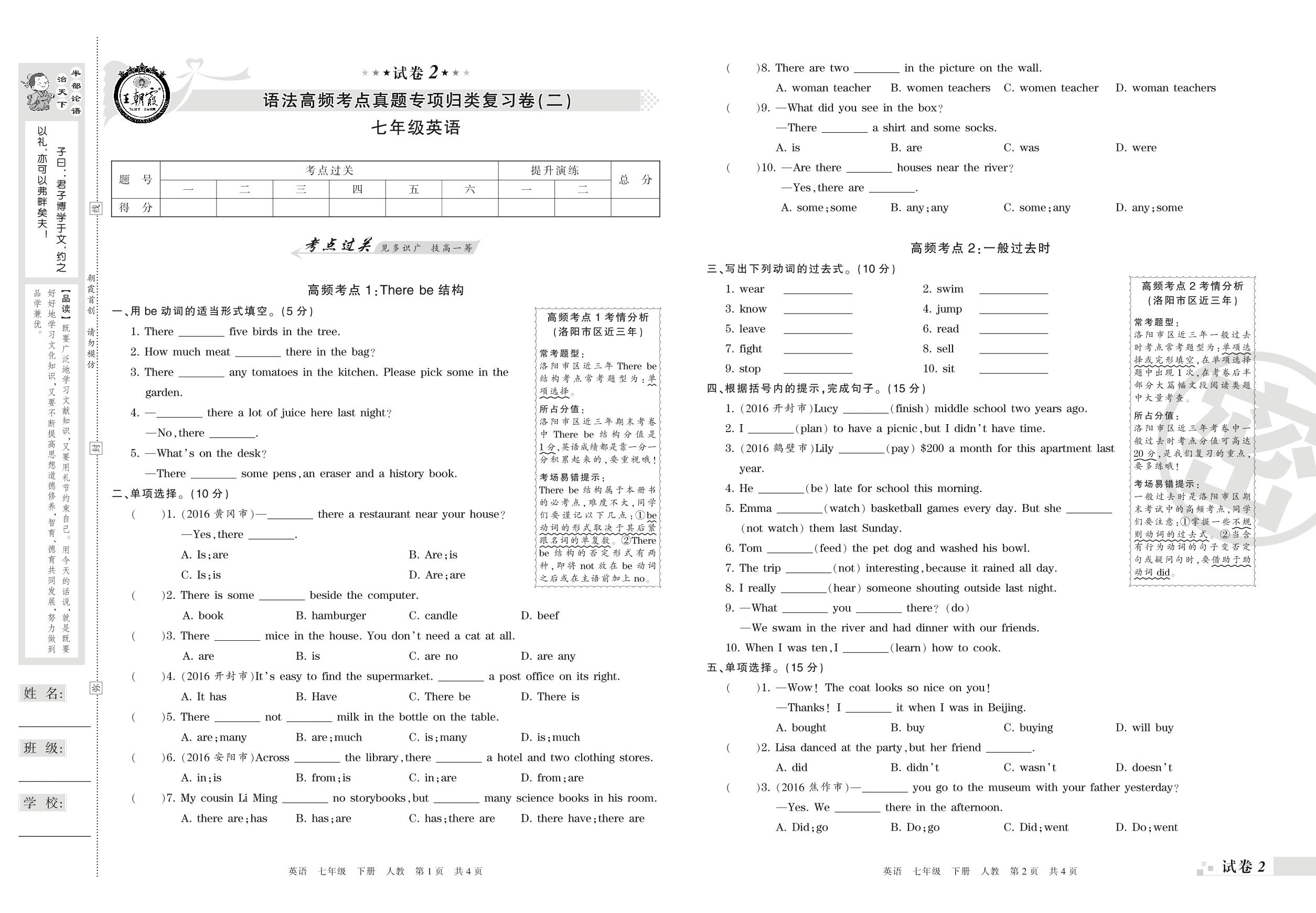 王朝霞期末专项卷——语法高频考点真题专项归类复习卷(二)七年级下册英语(人教版)_R220123142323341【2】