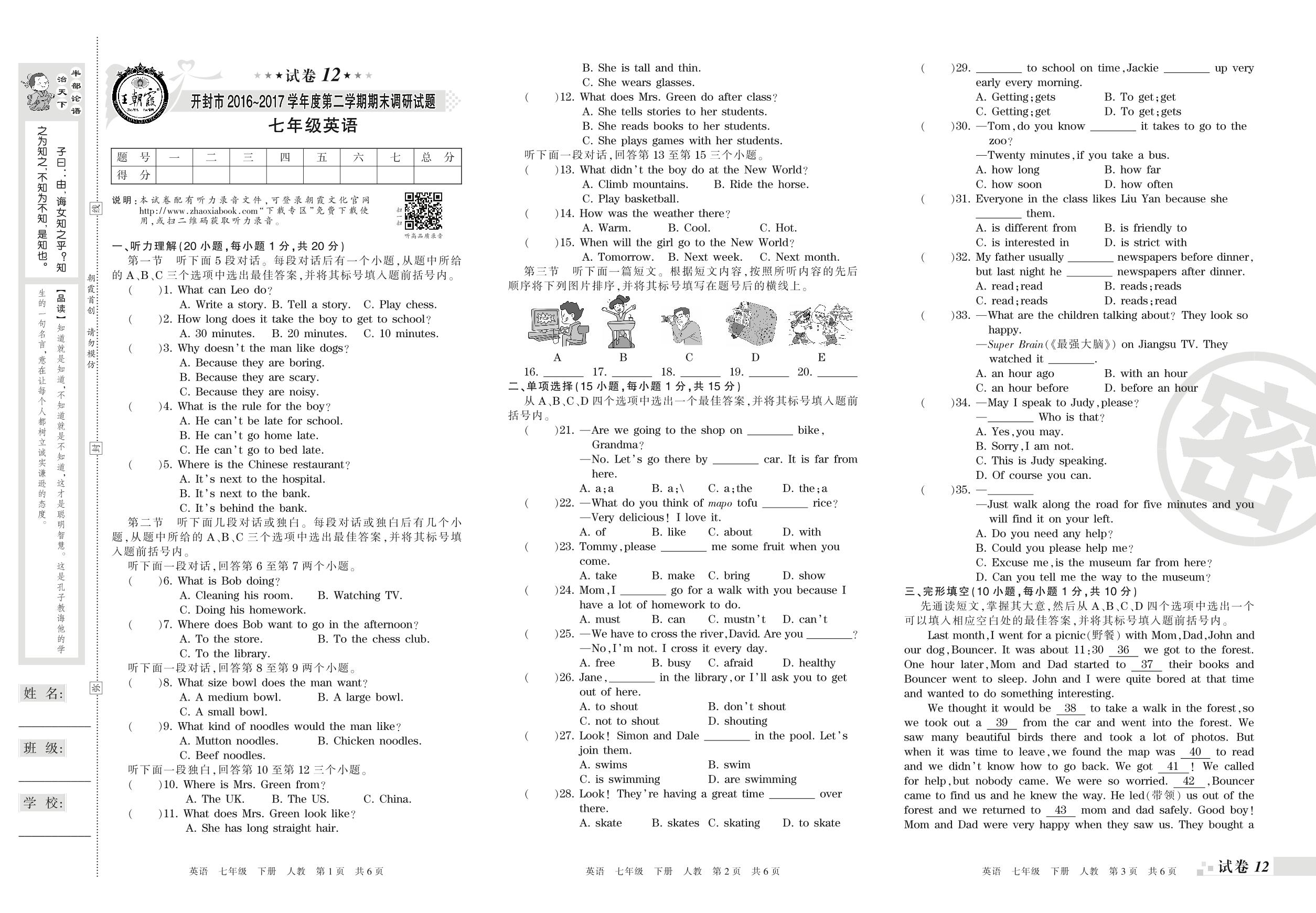 2016-2017学年第二学期开封市七年级英语试卷(人教版)【12】
