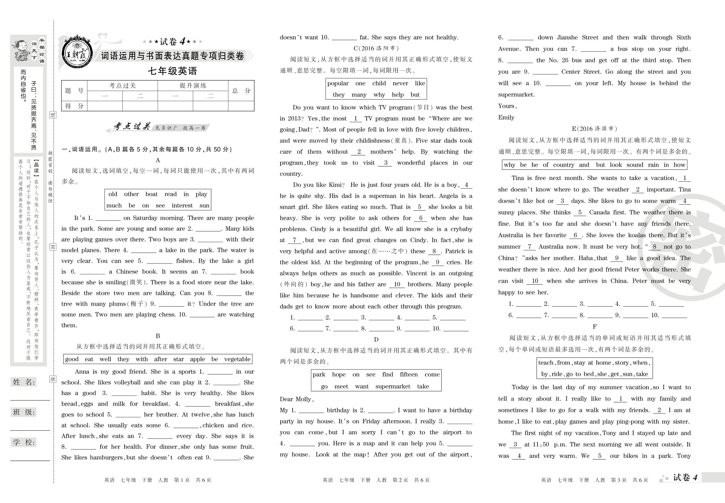 王朝霞期末专项卷——词语运用与书面表达真题专项归类卷七年级下册英语(人教版)【4】