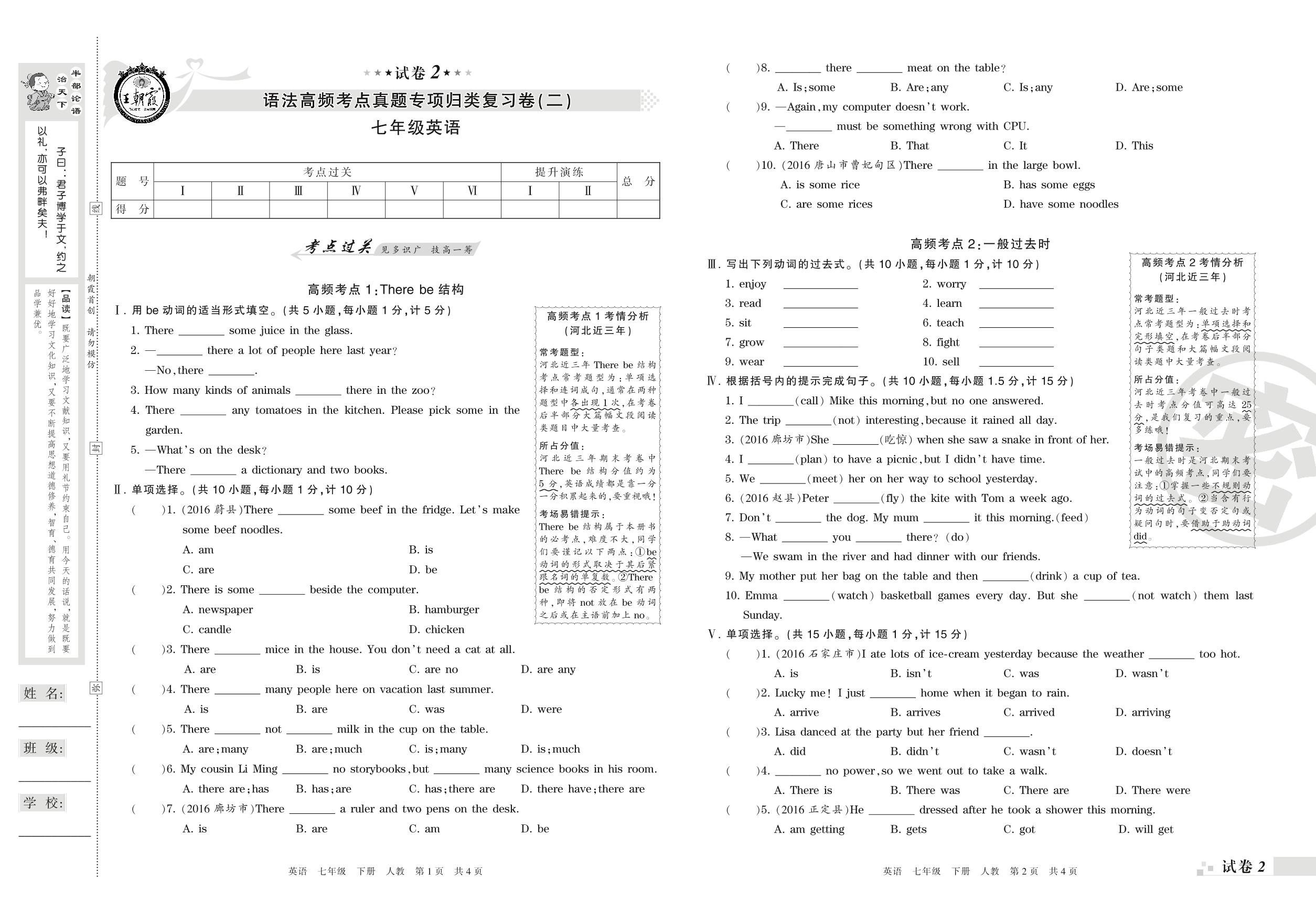 王朝霞期末专项卷——语法高频考点真题专项归类复习卷(二)七年级下册英语(人教版)_R220123145015641【2】