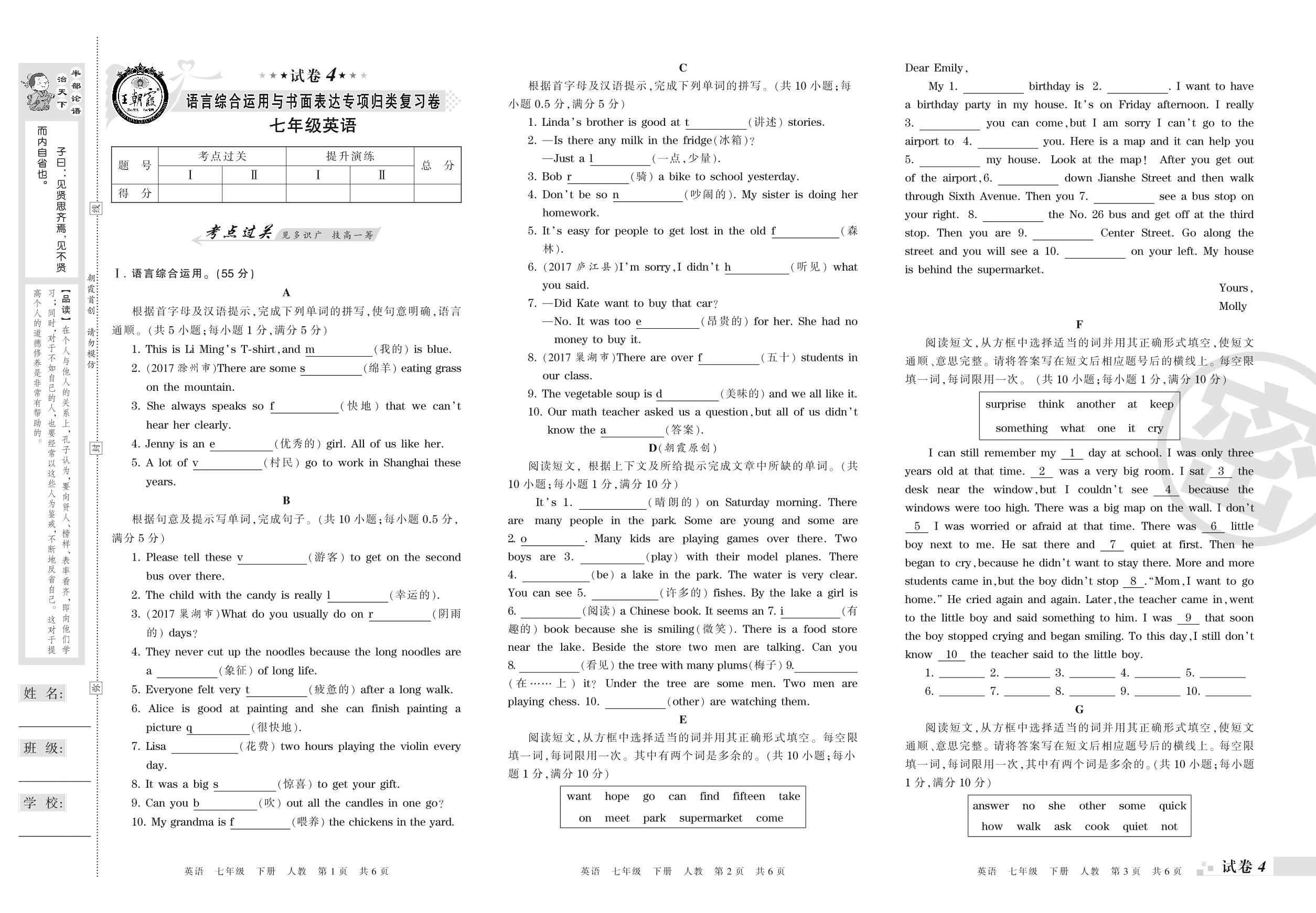 王朝霞期末专项卷——语言综合运用与书面表达专项归类复习卷七年级下册英语(人教版)【4】
