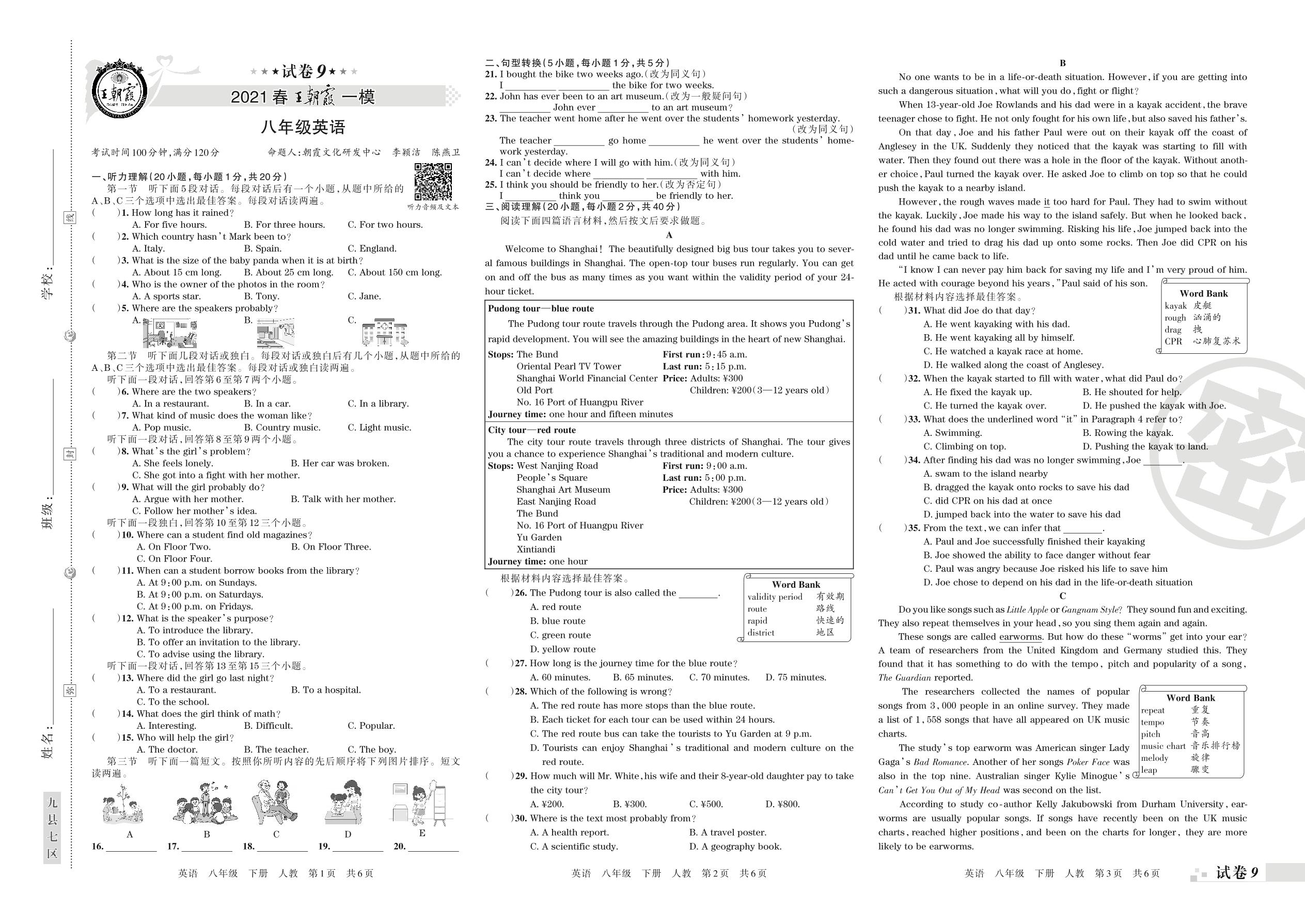 王朝霞期末模拟卷八年级下册英语(人教版)_R21080983530【9】