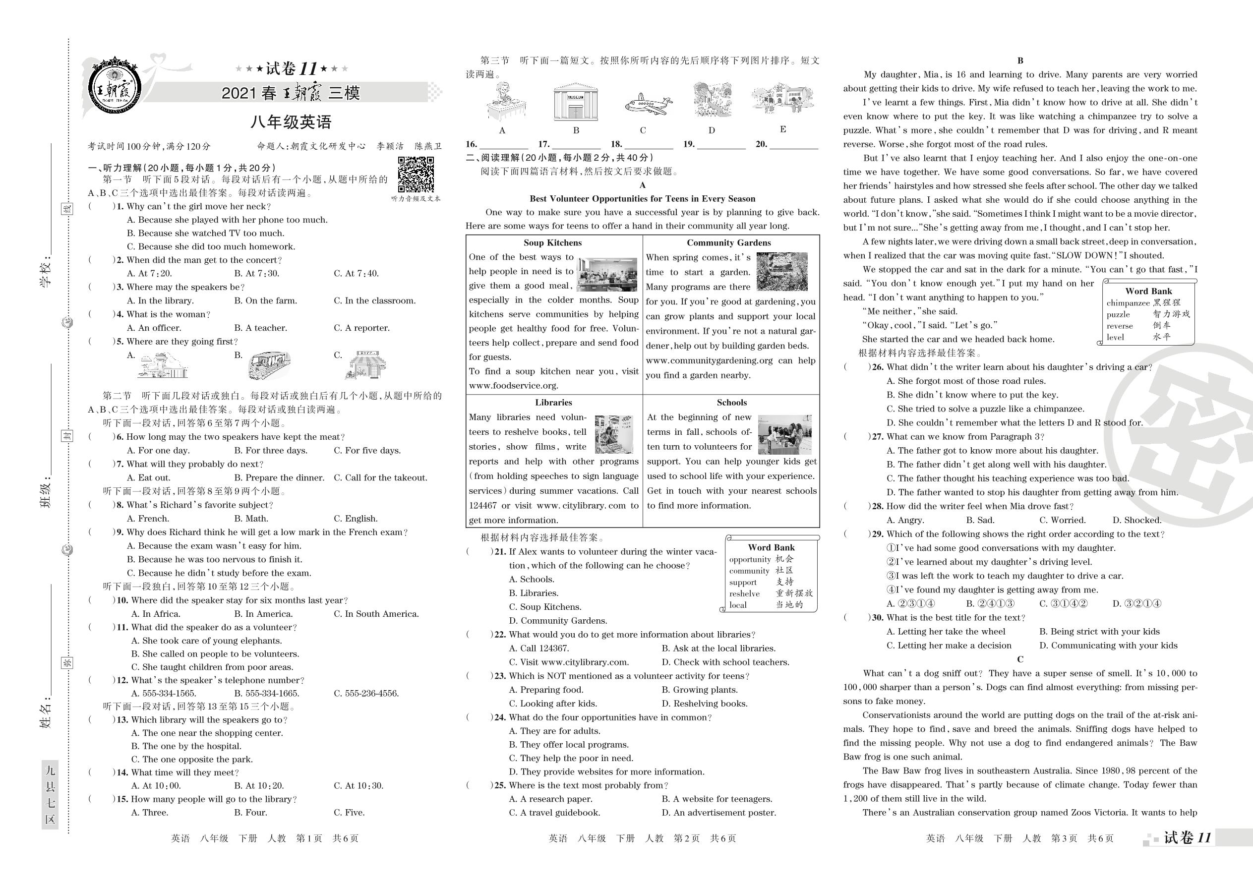 王朝霞期末模拟卷八年级下册英语(人教版)_R21080983609【11】