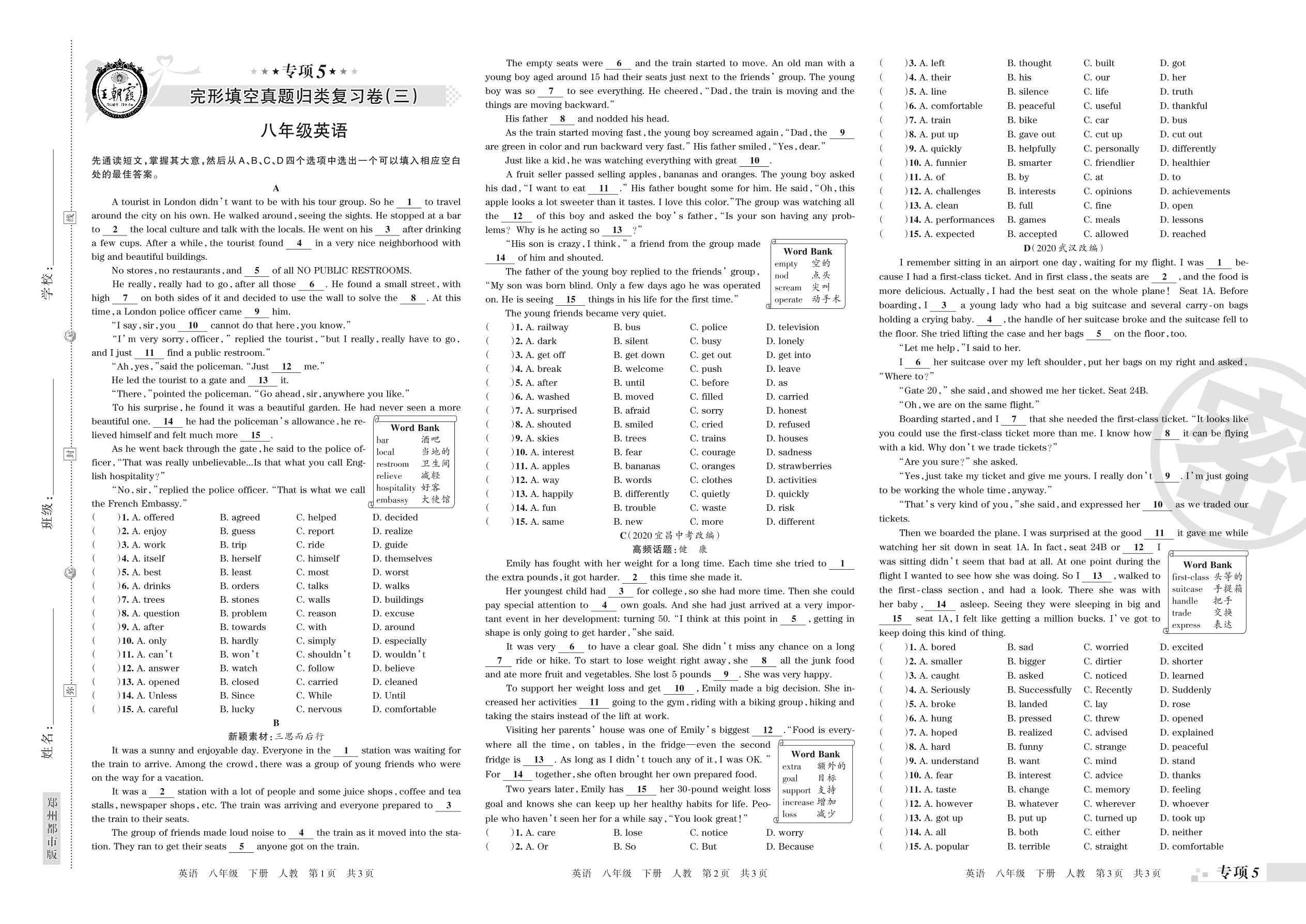 王朝霞期末专项卷——完形填空、语篇填空真题归类复习八年级下册英语(人教版)_R21080983649【0】