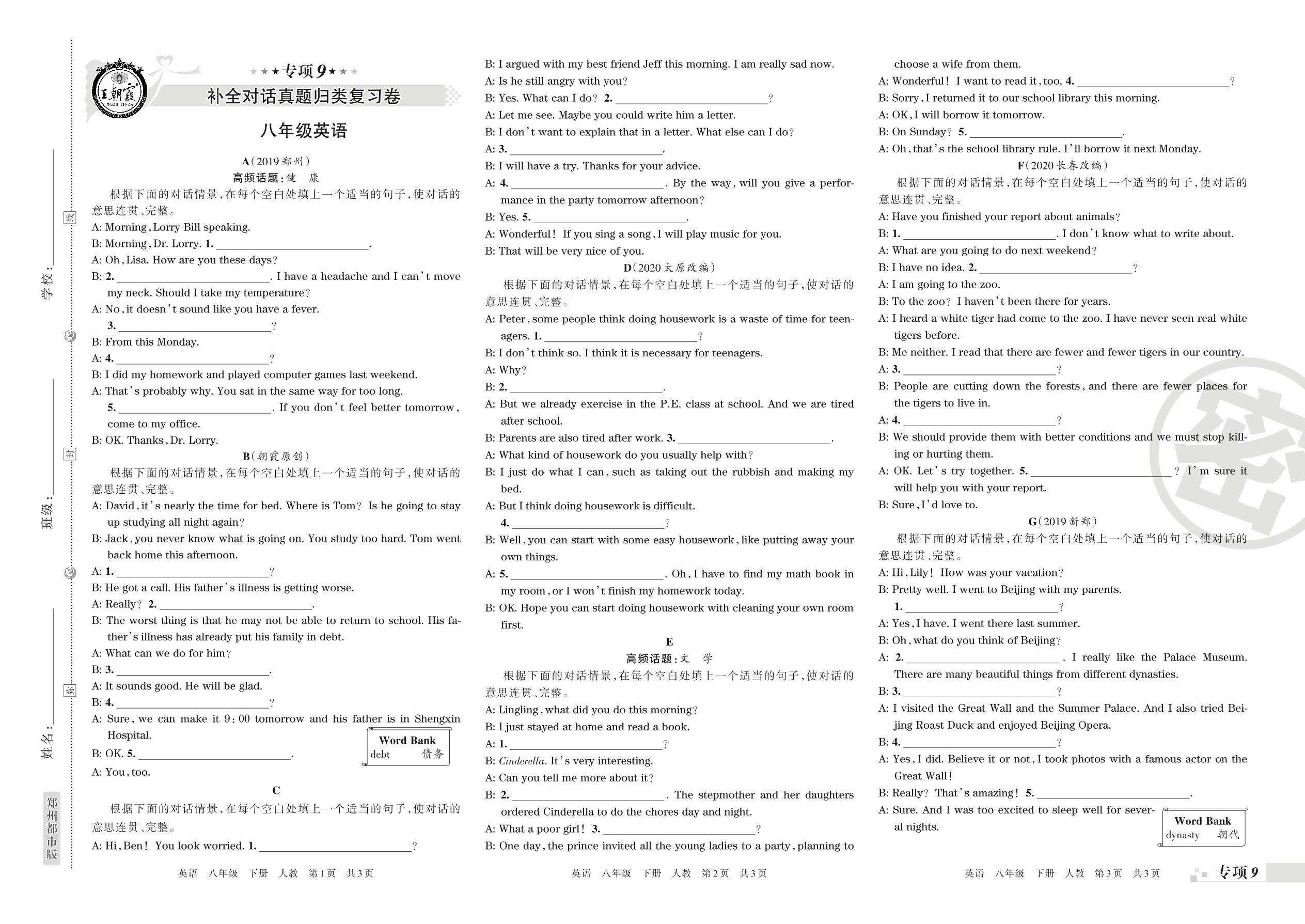 王朝霞期末专项卷——补全对话、书面表达真题归类复习八年级下册英语(人教版)_R21080983723【0】