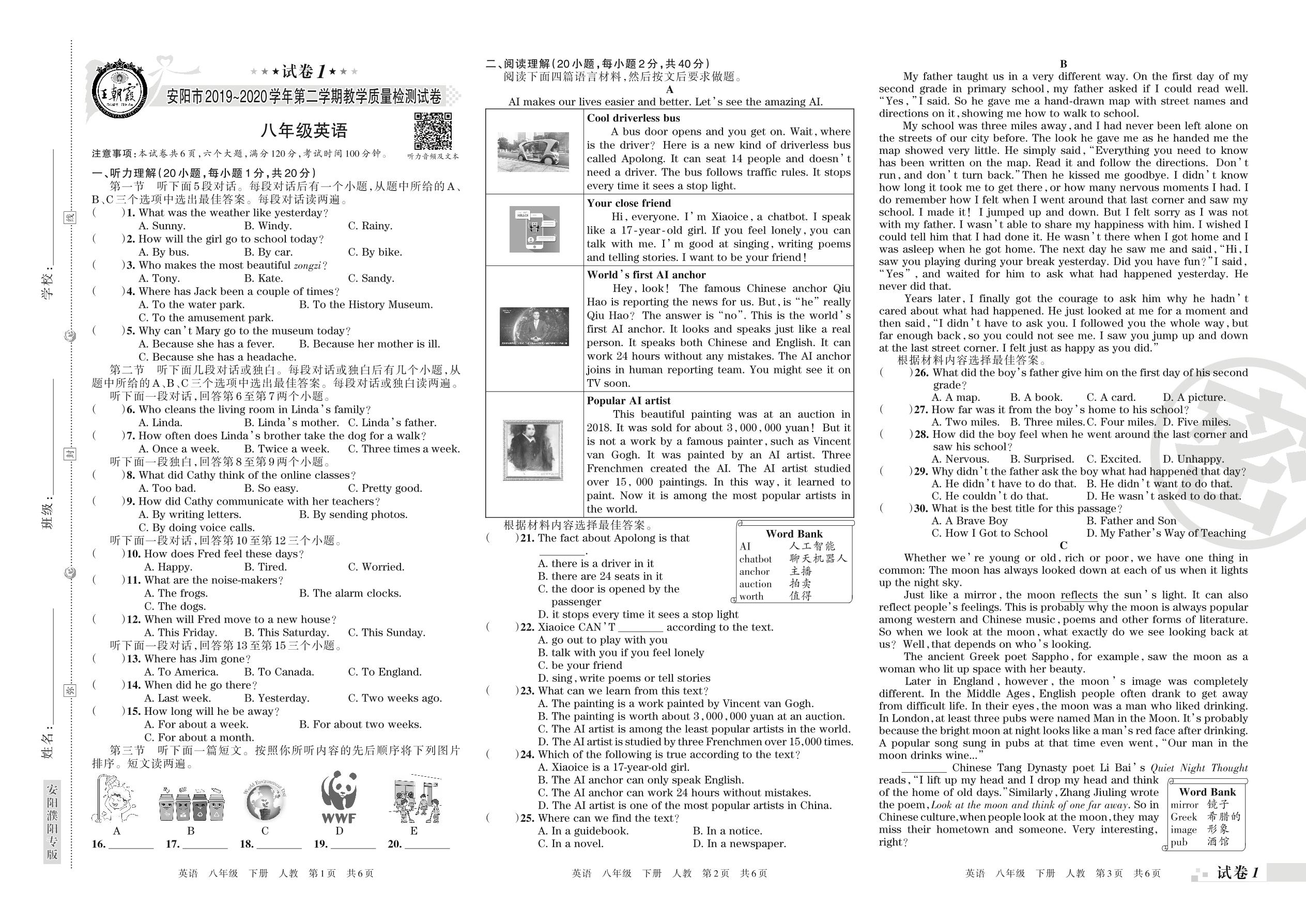 2019-2020学年第二学期安阳市八年级英语试卷(人教版)【1】