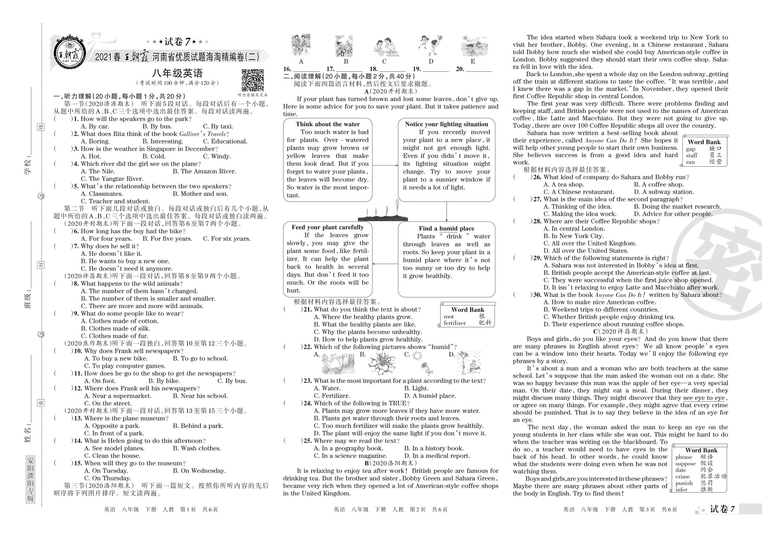 八年级英语人教版下册期末卷