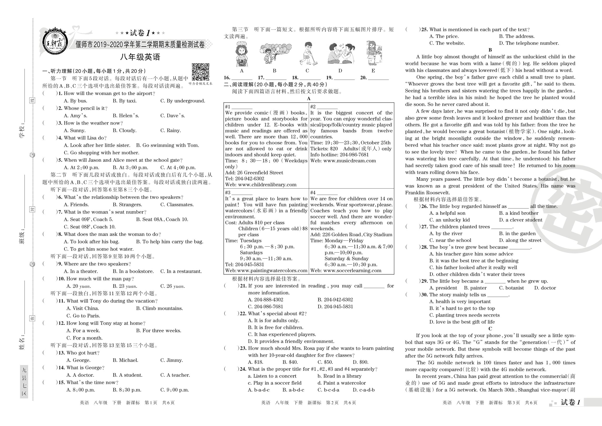 2019-2020学年第二学期偃师市八年级英语试卷(新课版)【1】