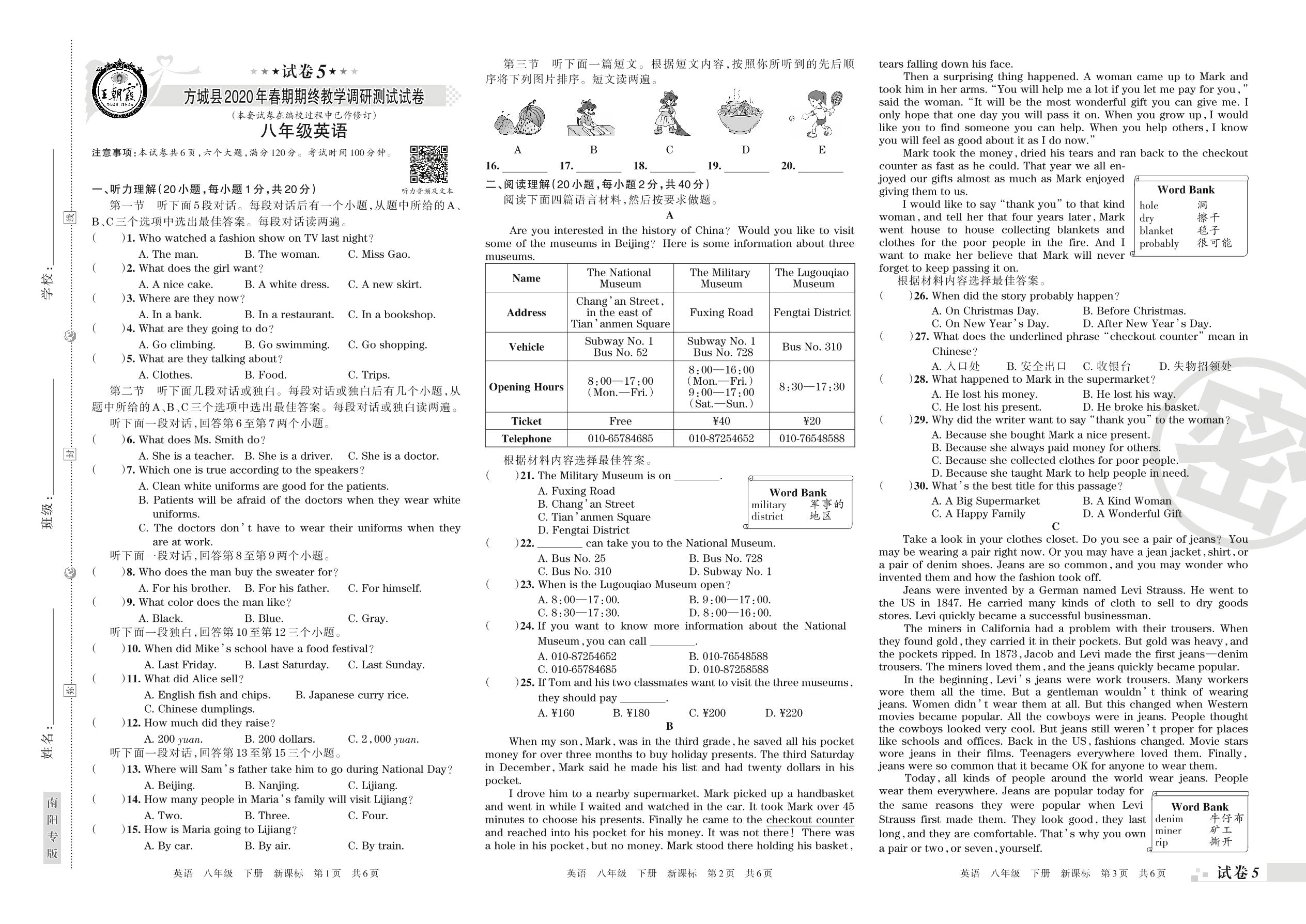 2019-2020学年第二学期南阳市方城县八年级英语试卷(新课版)【5】
