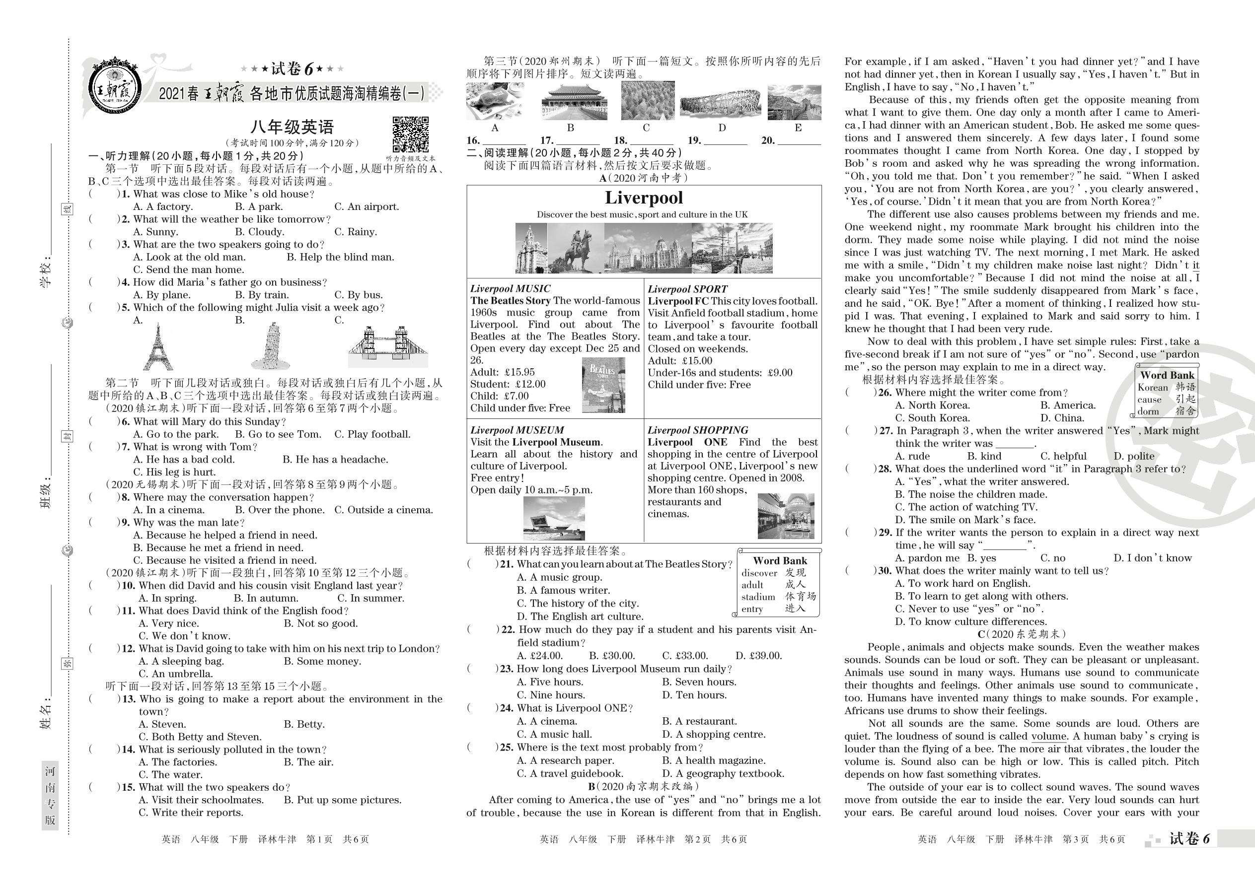 王朝霞海淘期末精编卷八年级下册英语(译林版)【6】