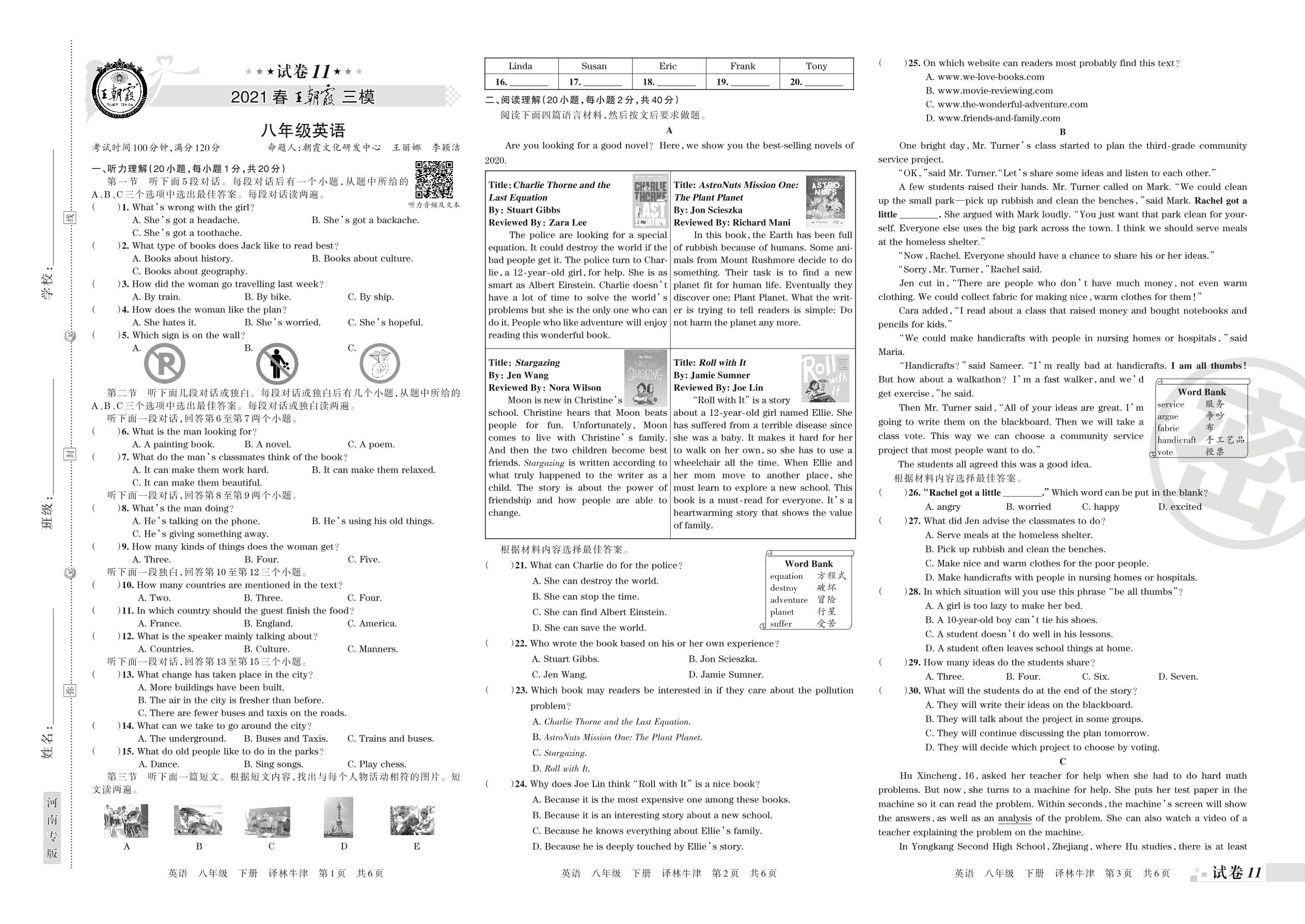 王朝霞期末模拟卷八年级下册英语(译林版)【11】
