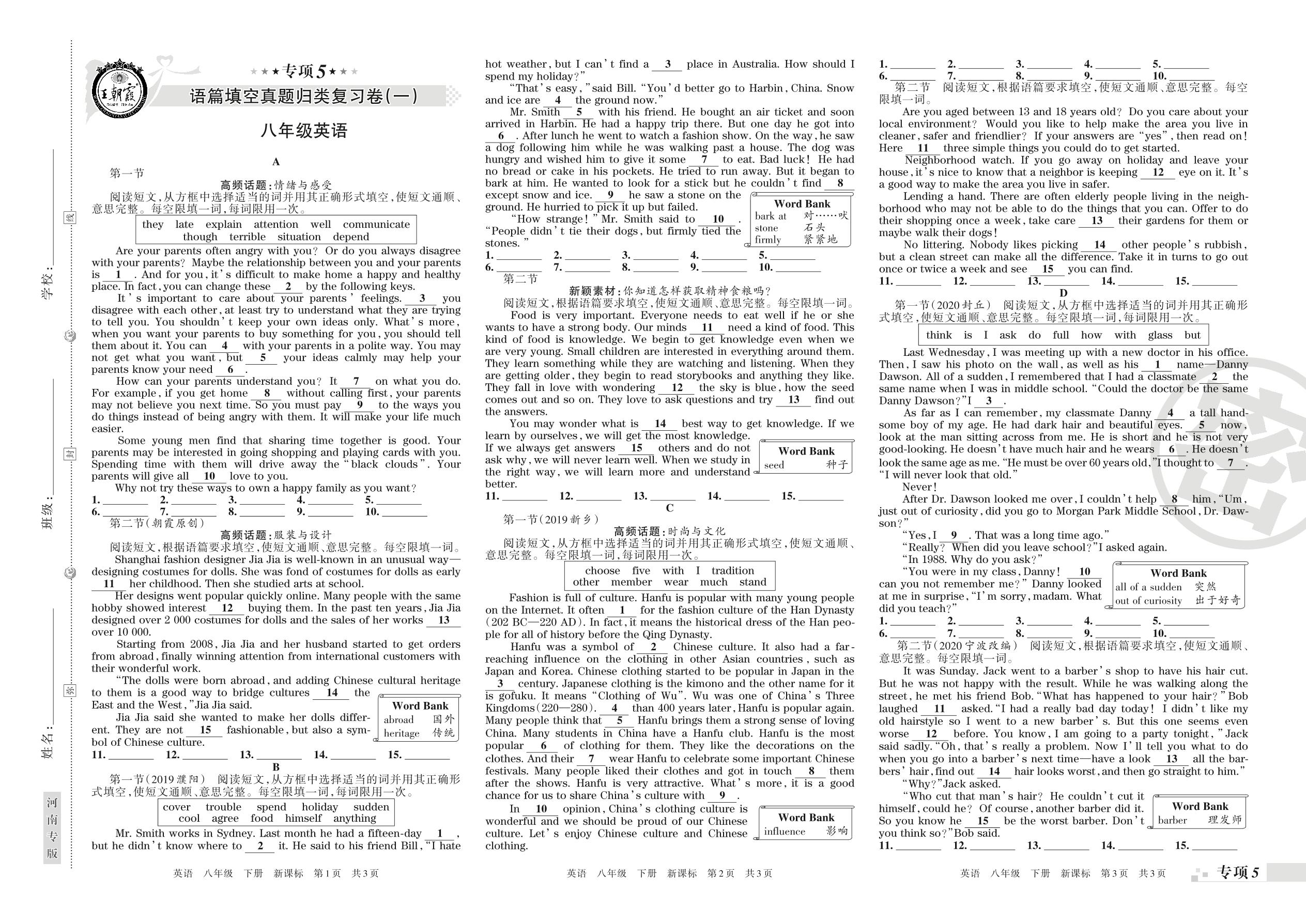 王朝霞期末专项卷——语篇填空(一)、(二)真题归类复习八年级下册英语(新课版)_R21080985722【0】