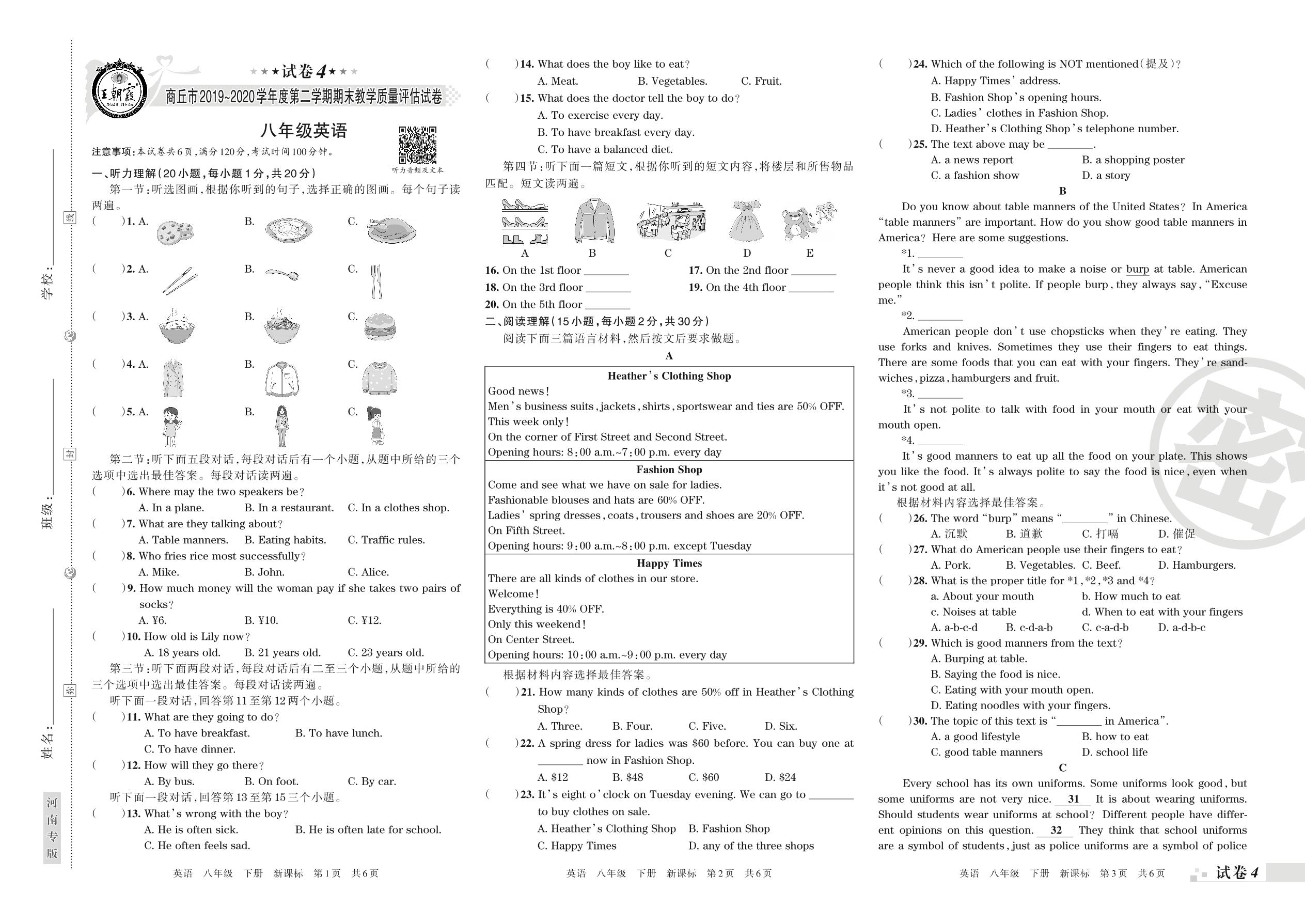 2019-2020学年第二学期商丘市八年级英语试卷(新课版)【4】