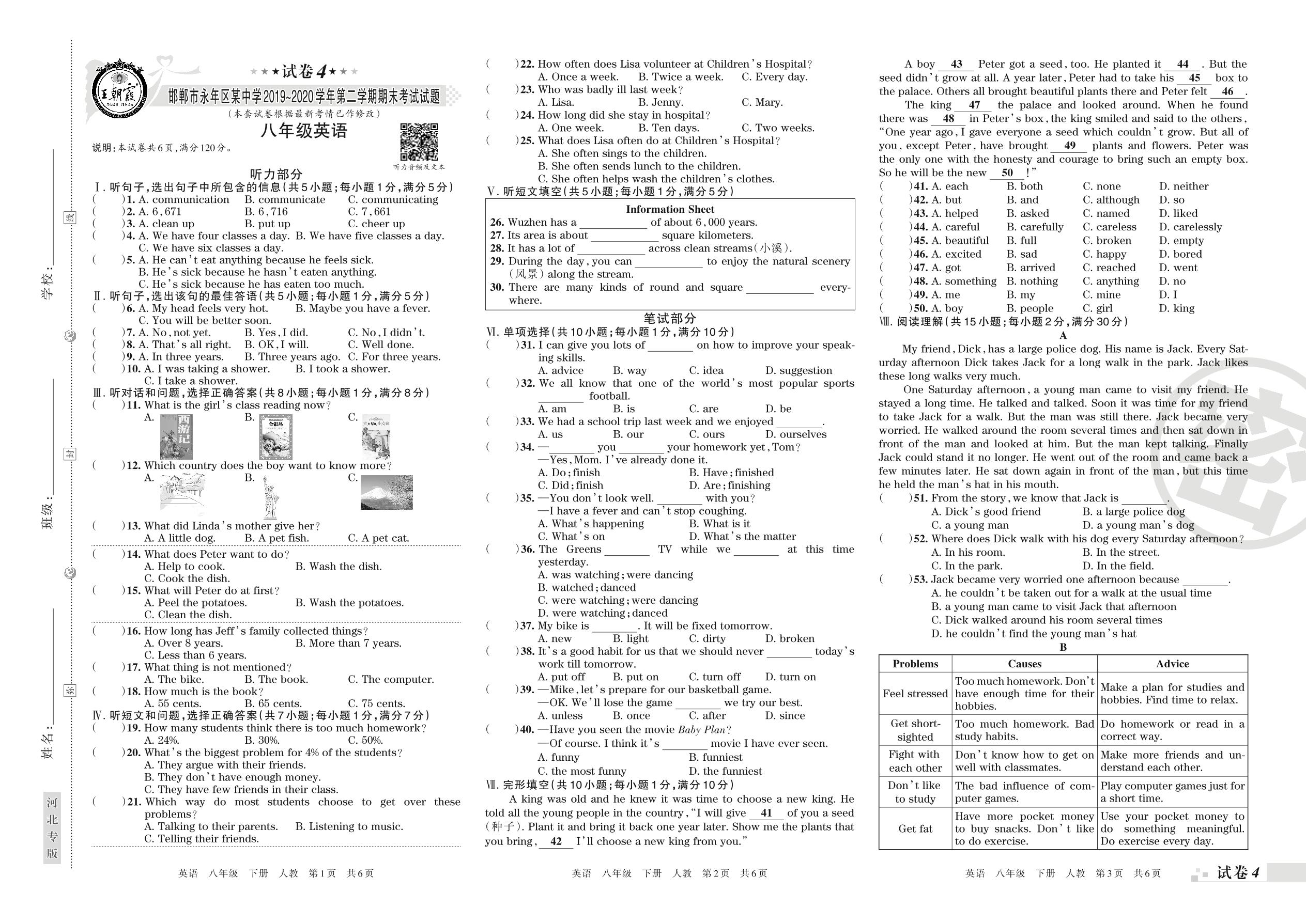 2019-2020学年第二学期邯郸市永年区八年级英语试卷(人教版)【4】