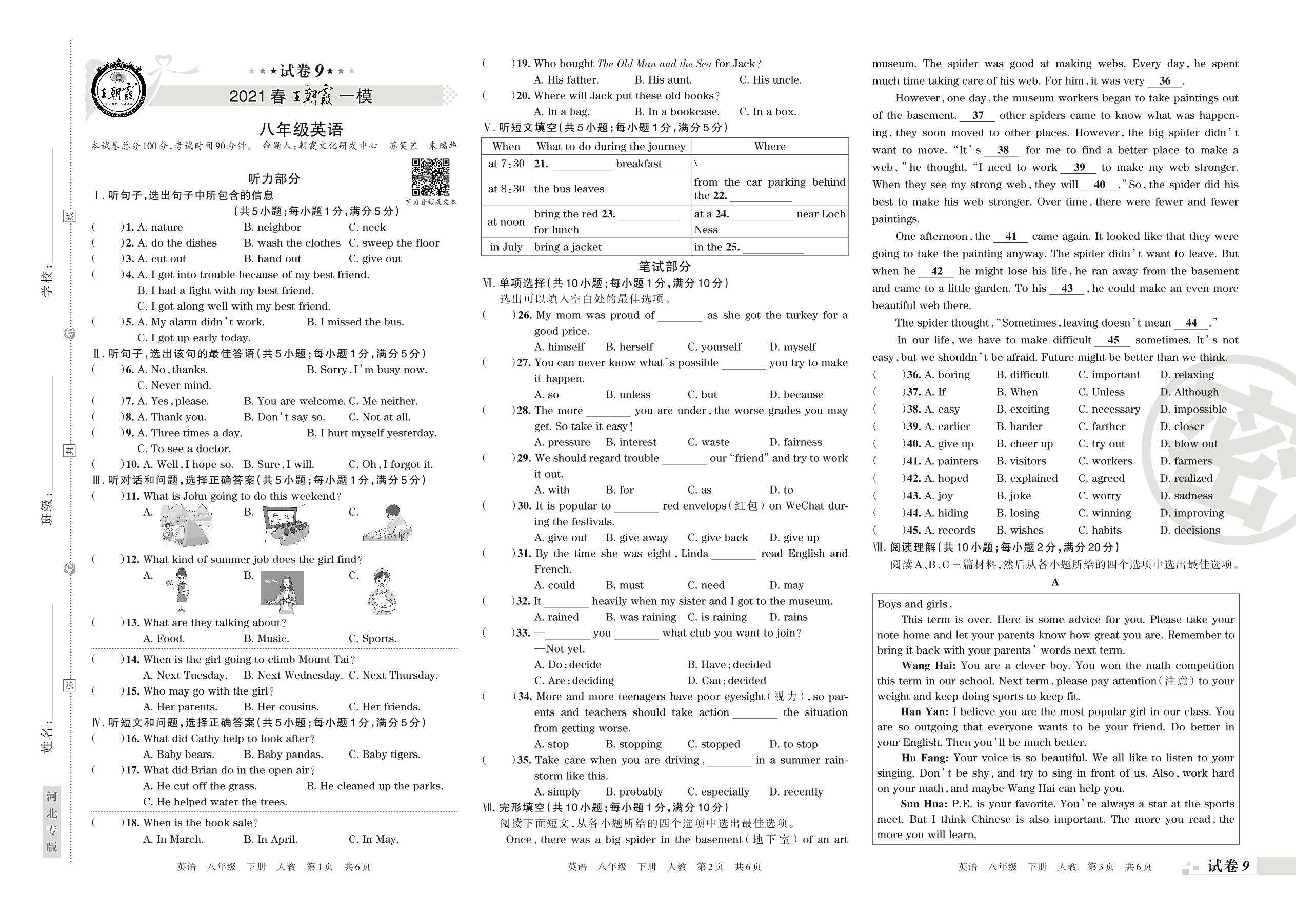 王朝霞期末模拟卷八年级下册英语(人教版)_R21080990517【9】