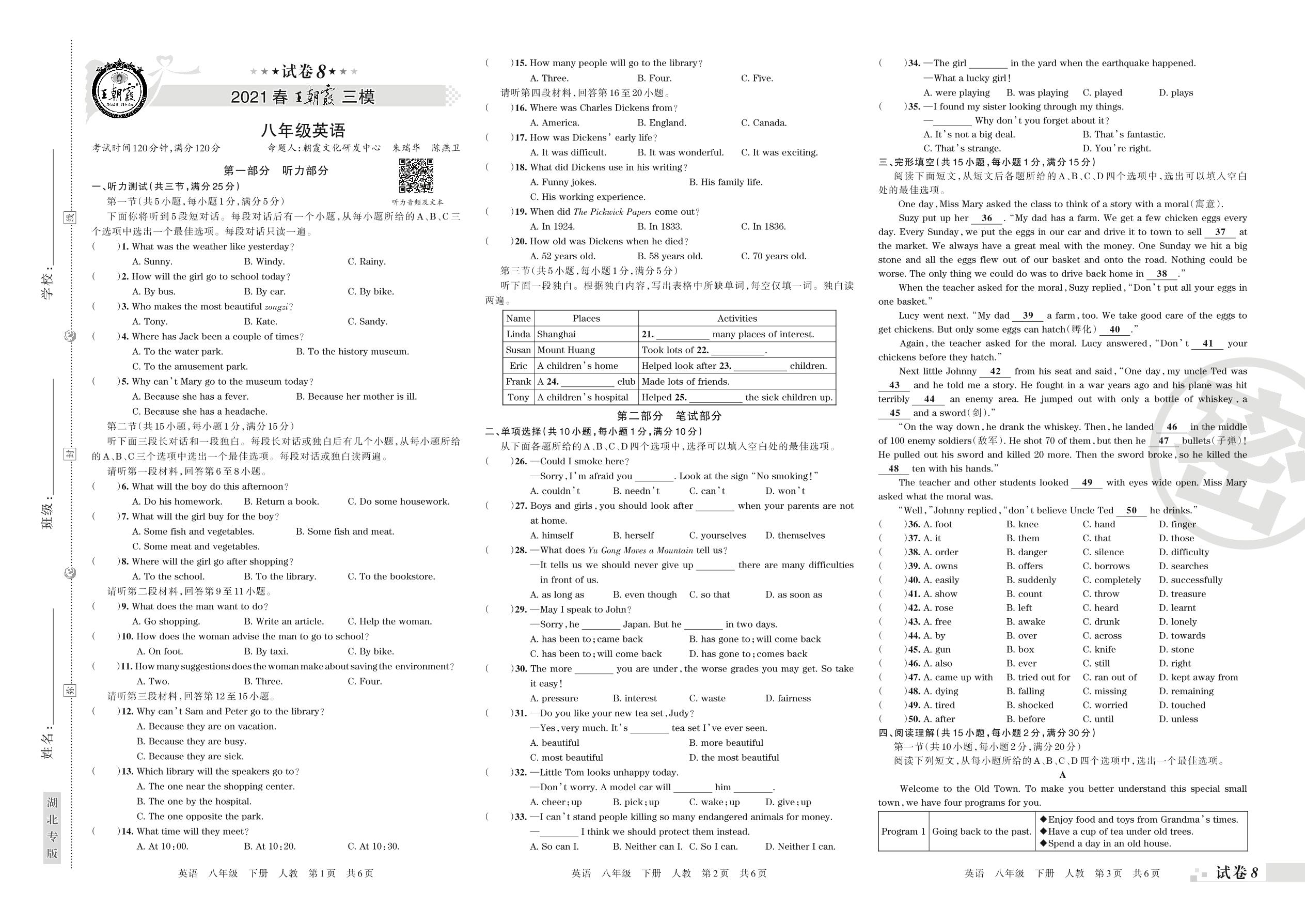 王朝霞期末模拟卷八年级下册英语(人教版)_R21080990930【8】