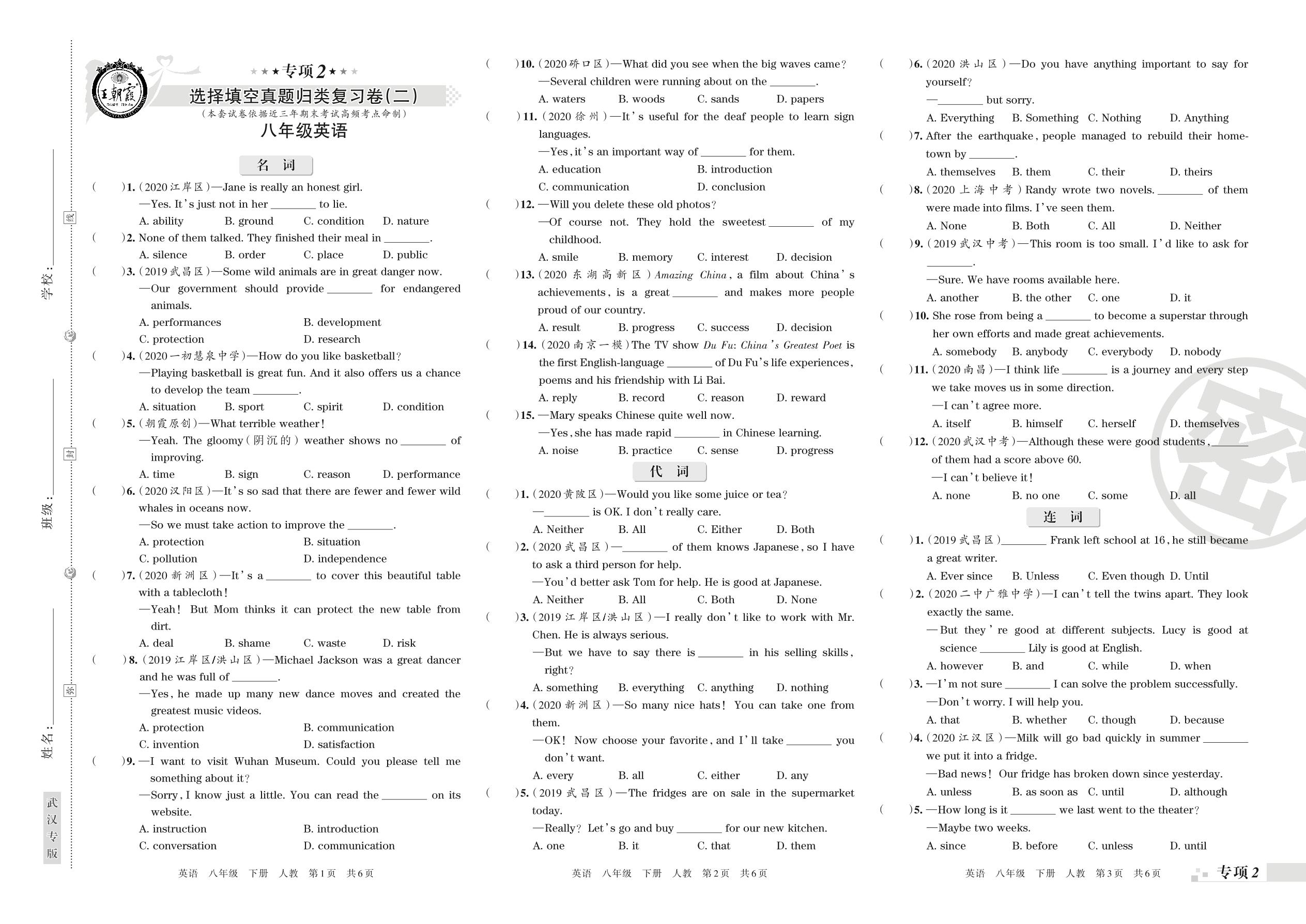 王朝霞期末专项卷——选择填空真题归类复习(一)八年级下册英语(人教版)【0】