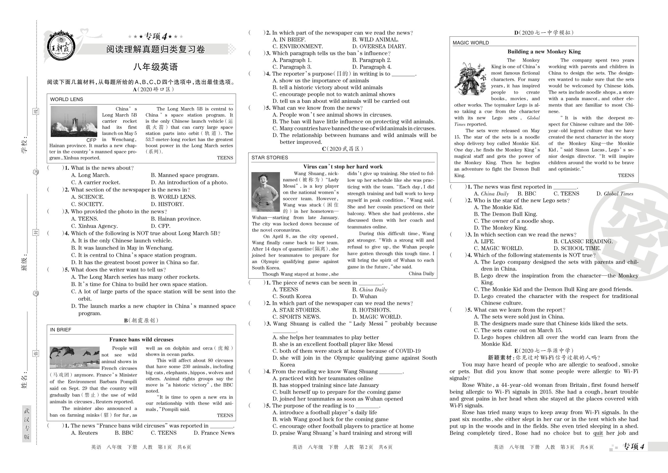 王朝霞期末专项卷——阅读理解真题归类复习八年级下册英语(人教版)【0】