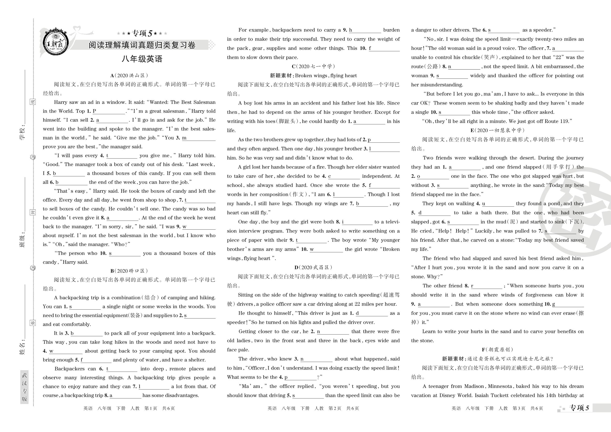 王朝霞期末专项卷——阅读理解填词真题归类复习八年级下册英语(人教版)【0】