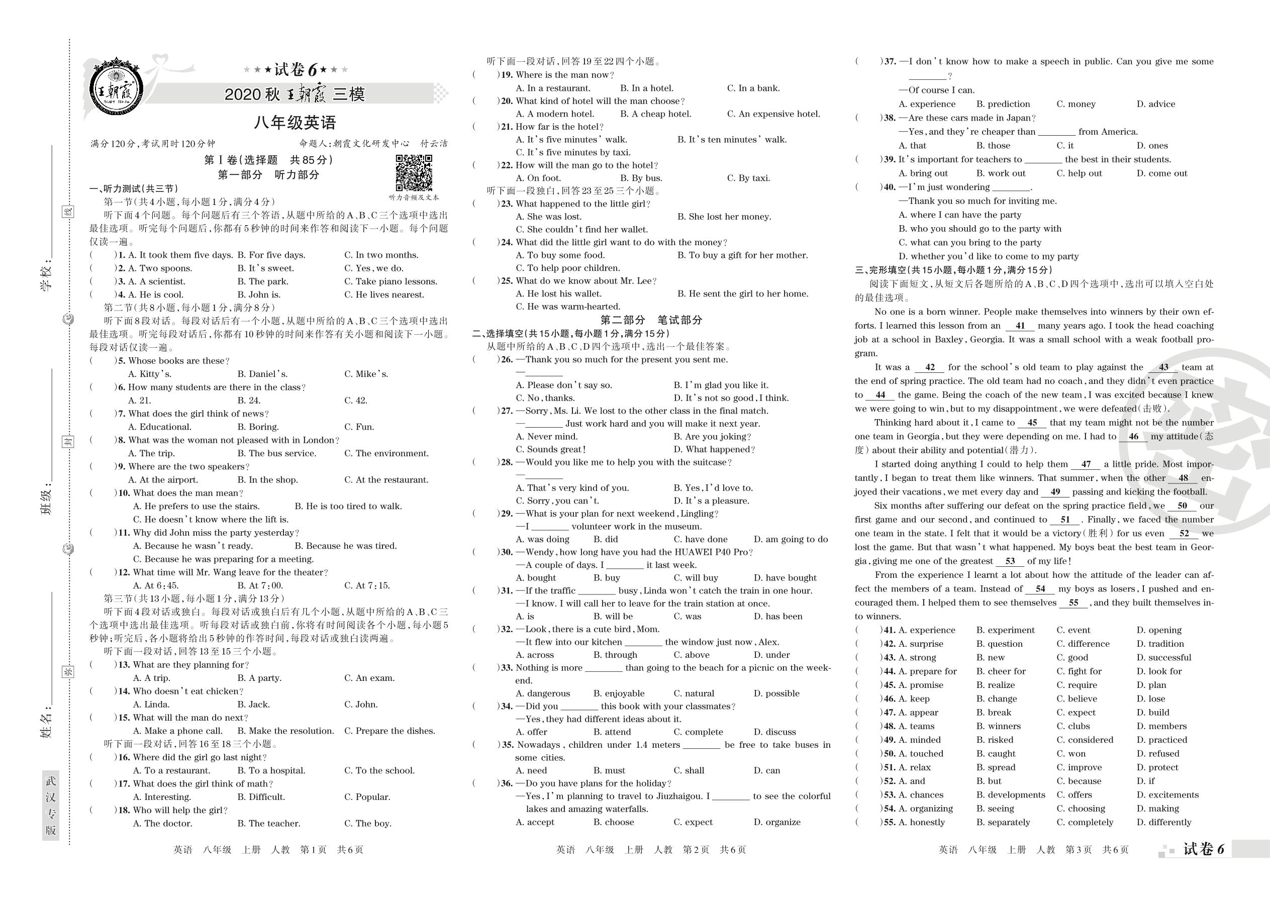 王朝霞期末模拟卷八年级上册英语(人教版)_R21080991649【6】