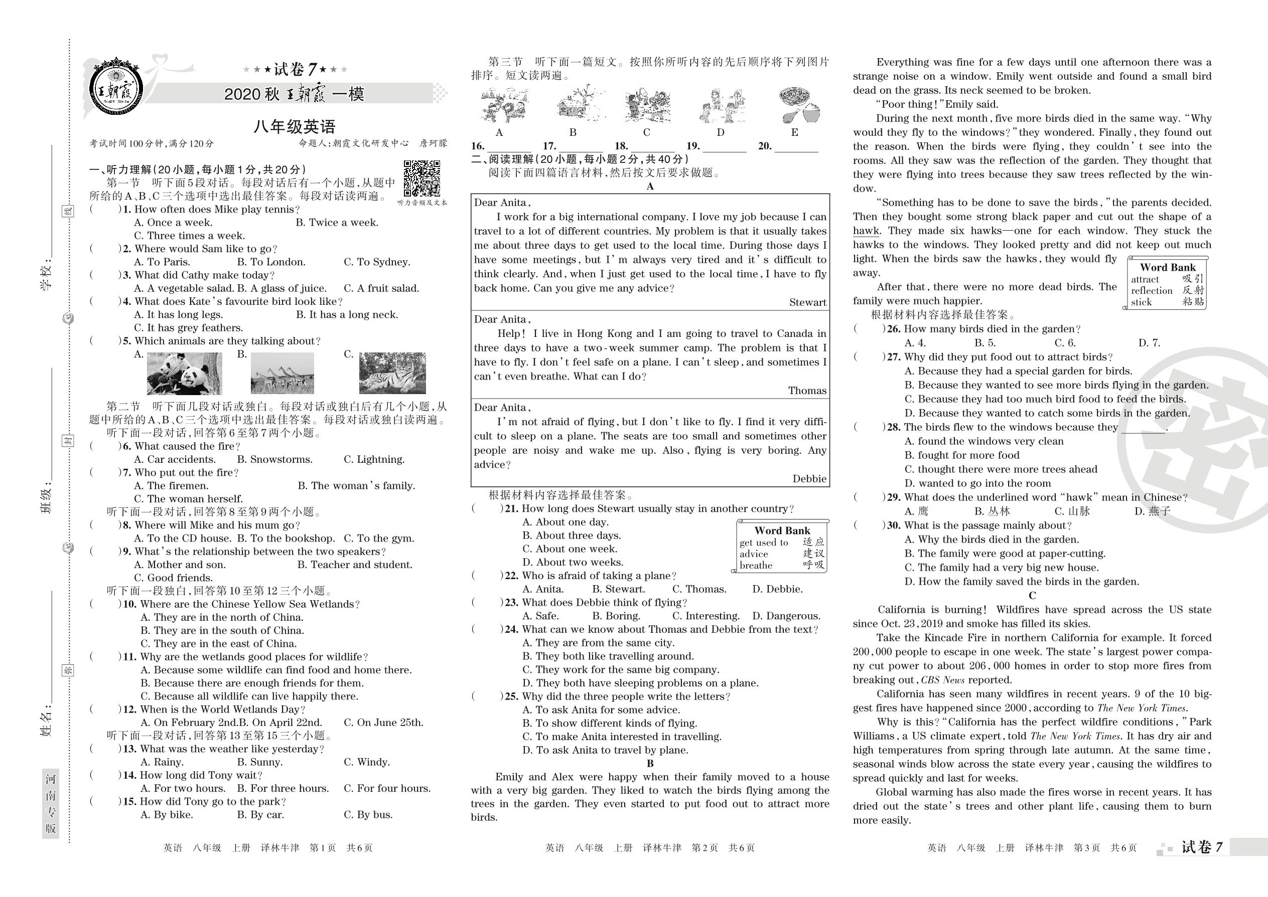 王朝霞期末模拟卷八年级上册英语(译林版)_R21080991847【7】