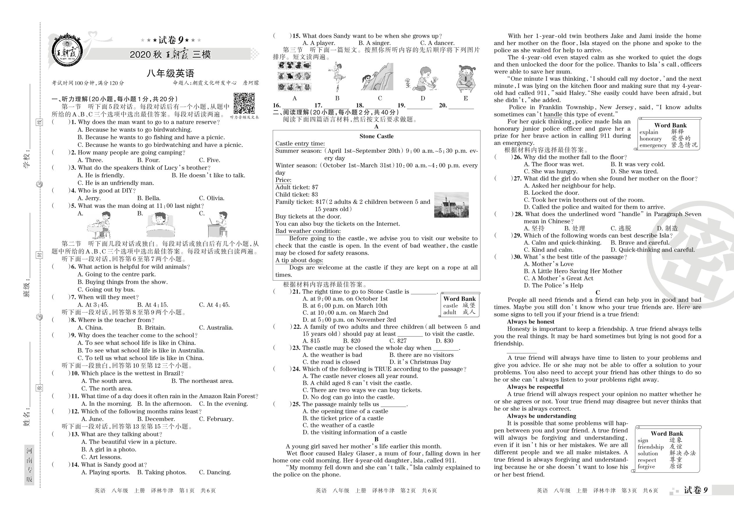 王朝霞期末模拟卷八年级上册英语(译林版)【9】