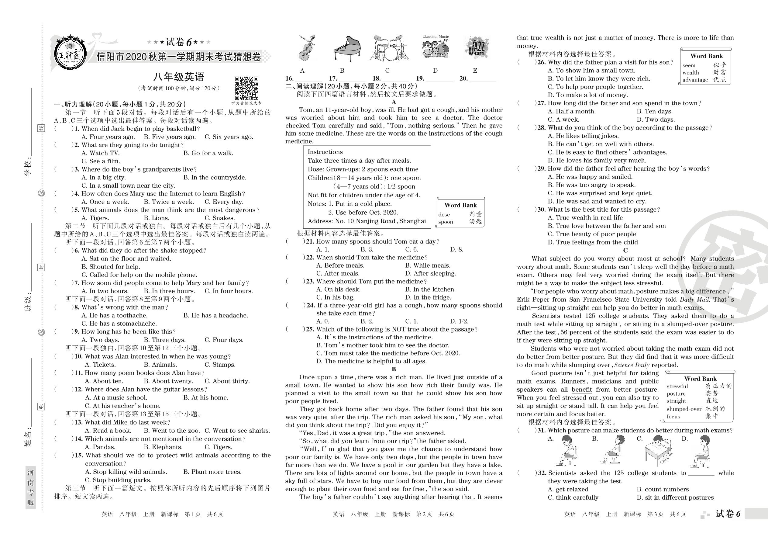 2019-2020学年第一学期信阳市猜想卷八年级英语试卷(新课版)【6】