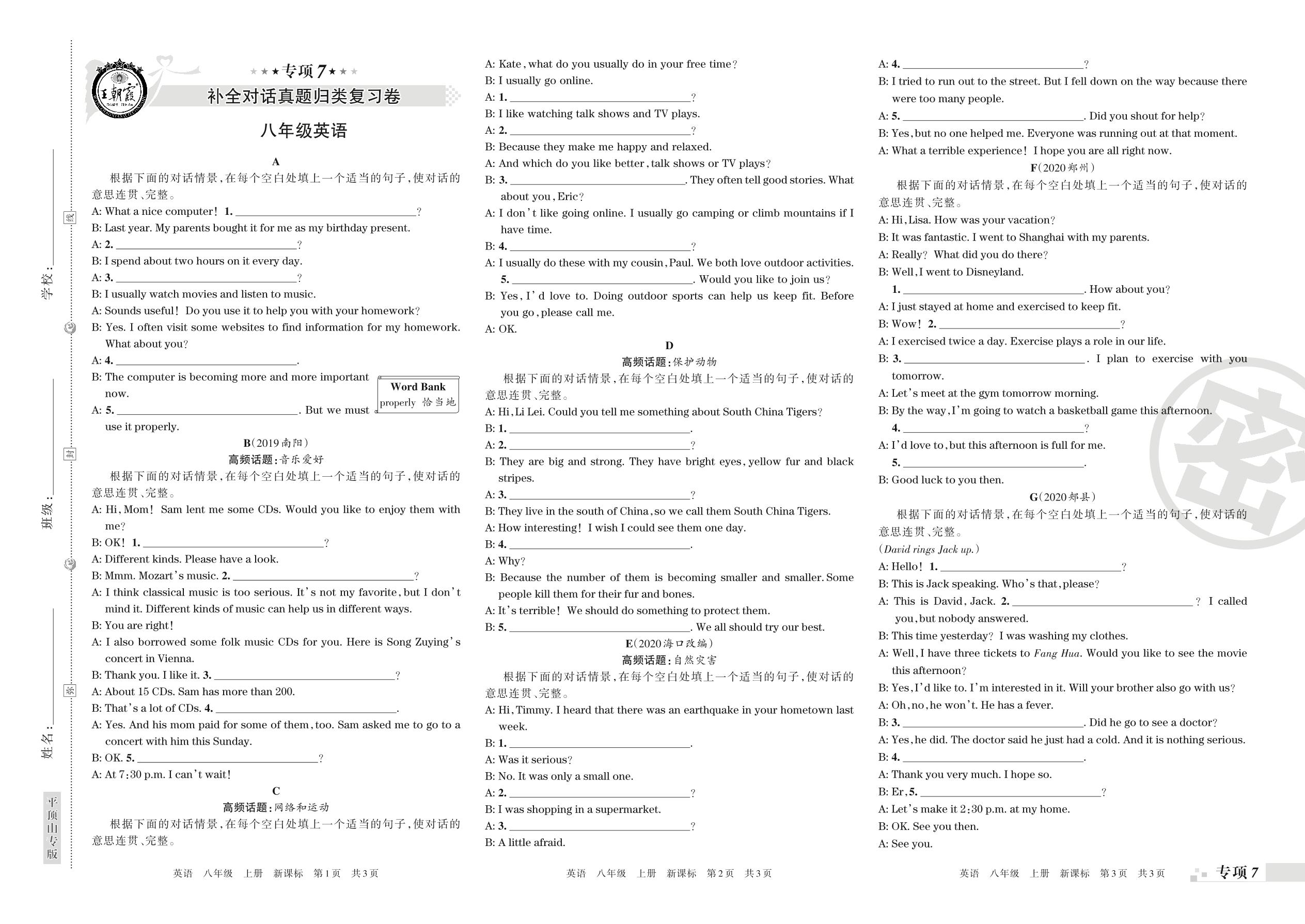 王朝霞期末专项卷——补全对话、书面表达真题归类复习八年级上册英语(新课版)_R21080992419【0】