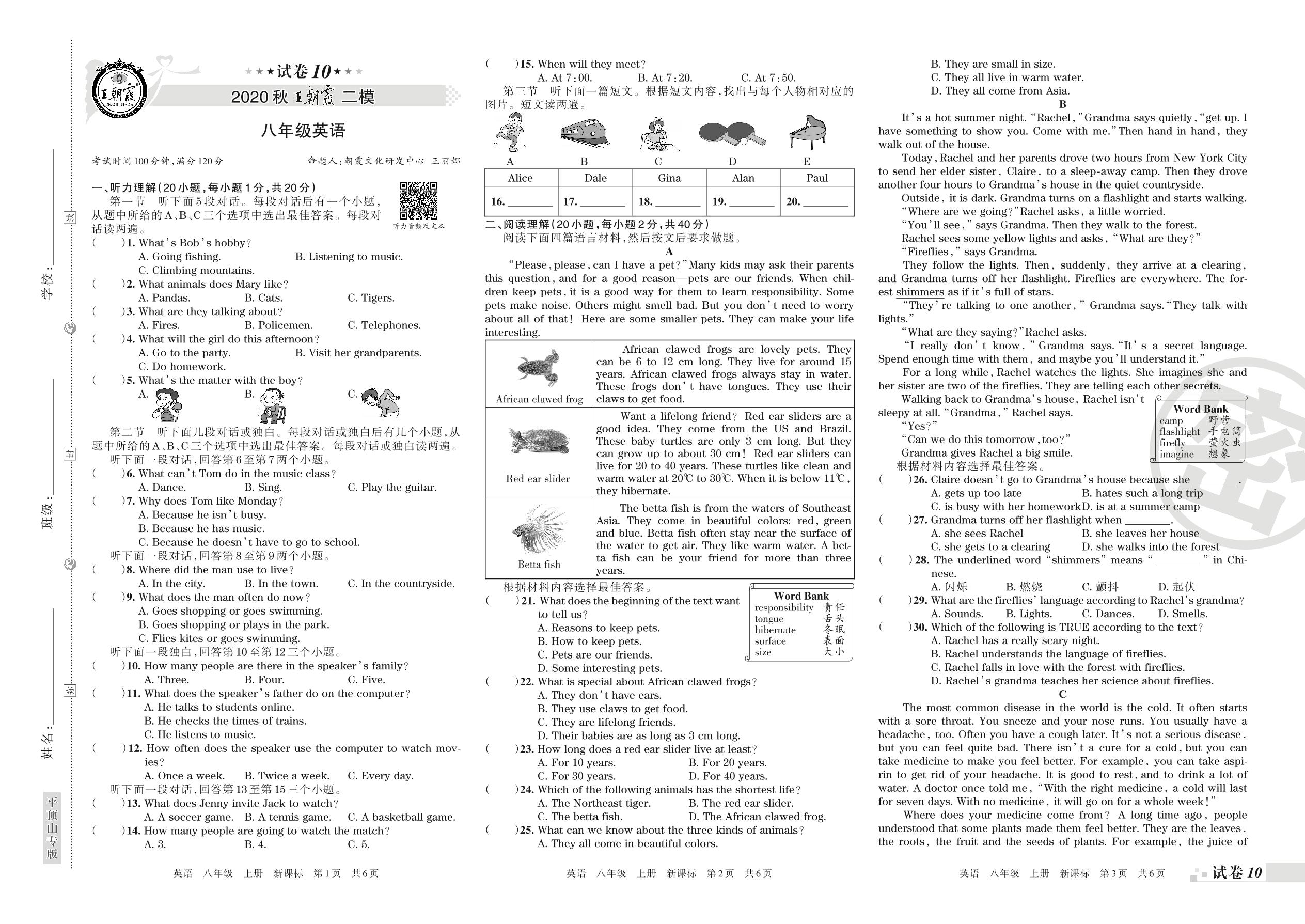 王朝霞期末模拟卷八年级上册英语(新课版)_R21080992558【10】