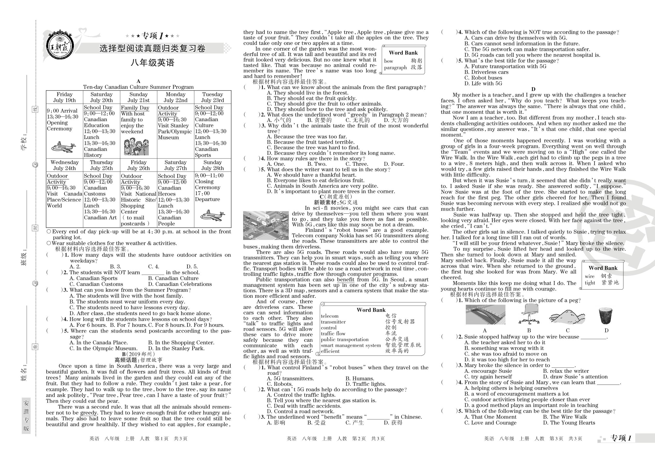 王朝霞期末专项卷——选择型阅读、任务型阅读真题归类复习八年级上册英语(人教版)_R21080993148【0】