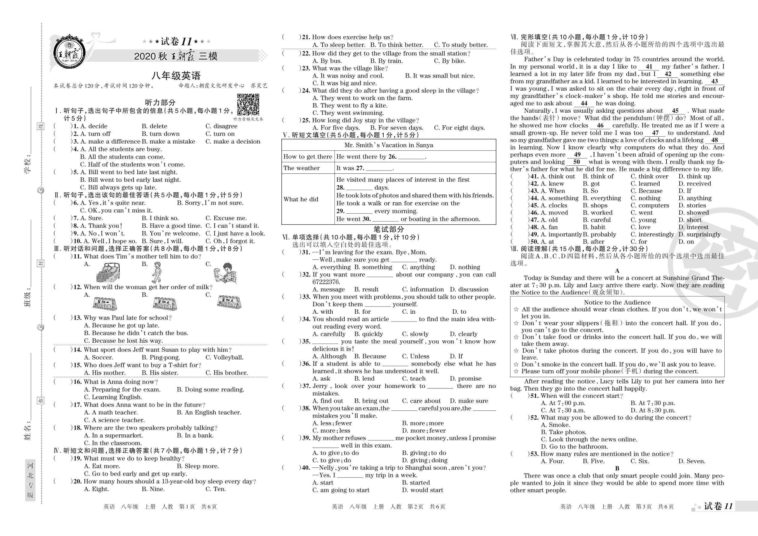 王朝霞期末模拟卷八年级上册英语(人教版)_R21080993606【11】