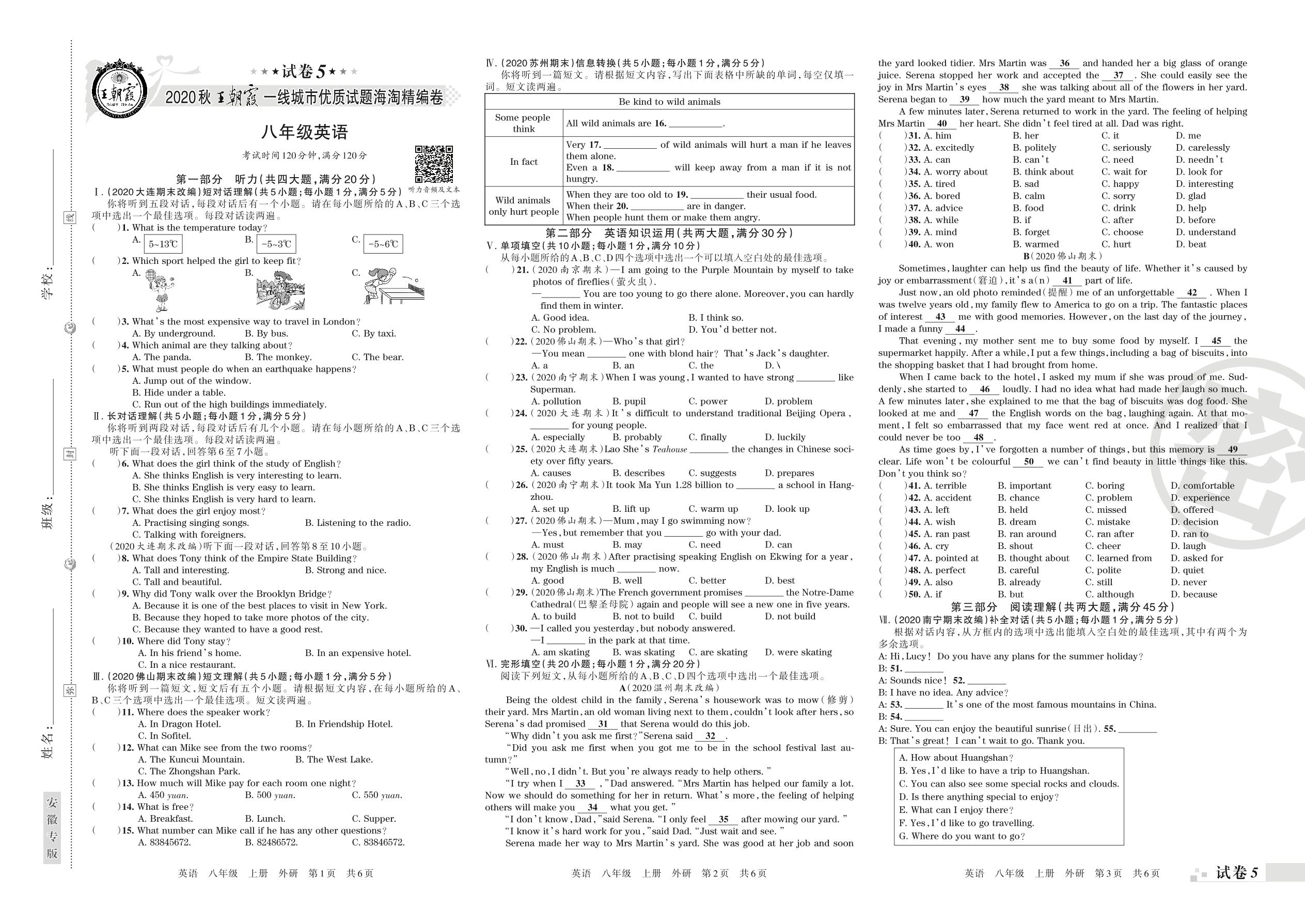 王朝霞海淘期末精编卷八年级上册英语(外研版)【5】