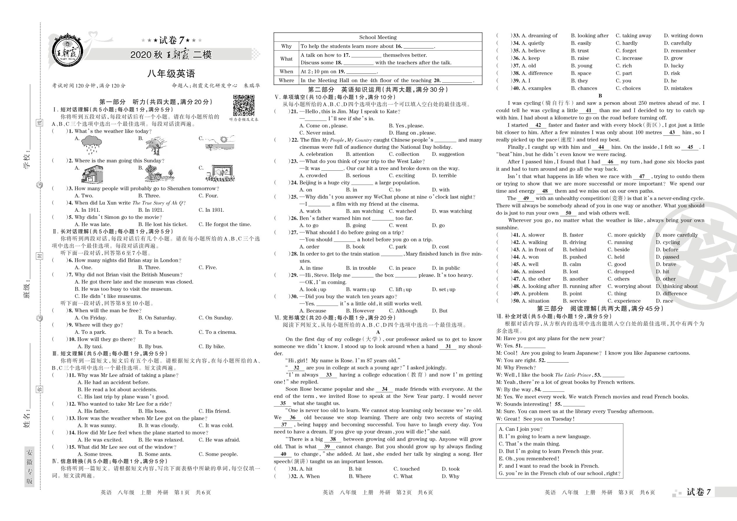 王朝霞期末模拟卷八年级上册英语(外研版)_R21080994037【7】