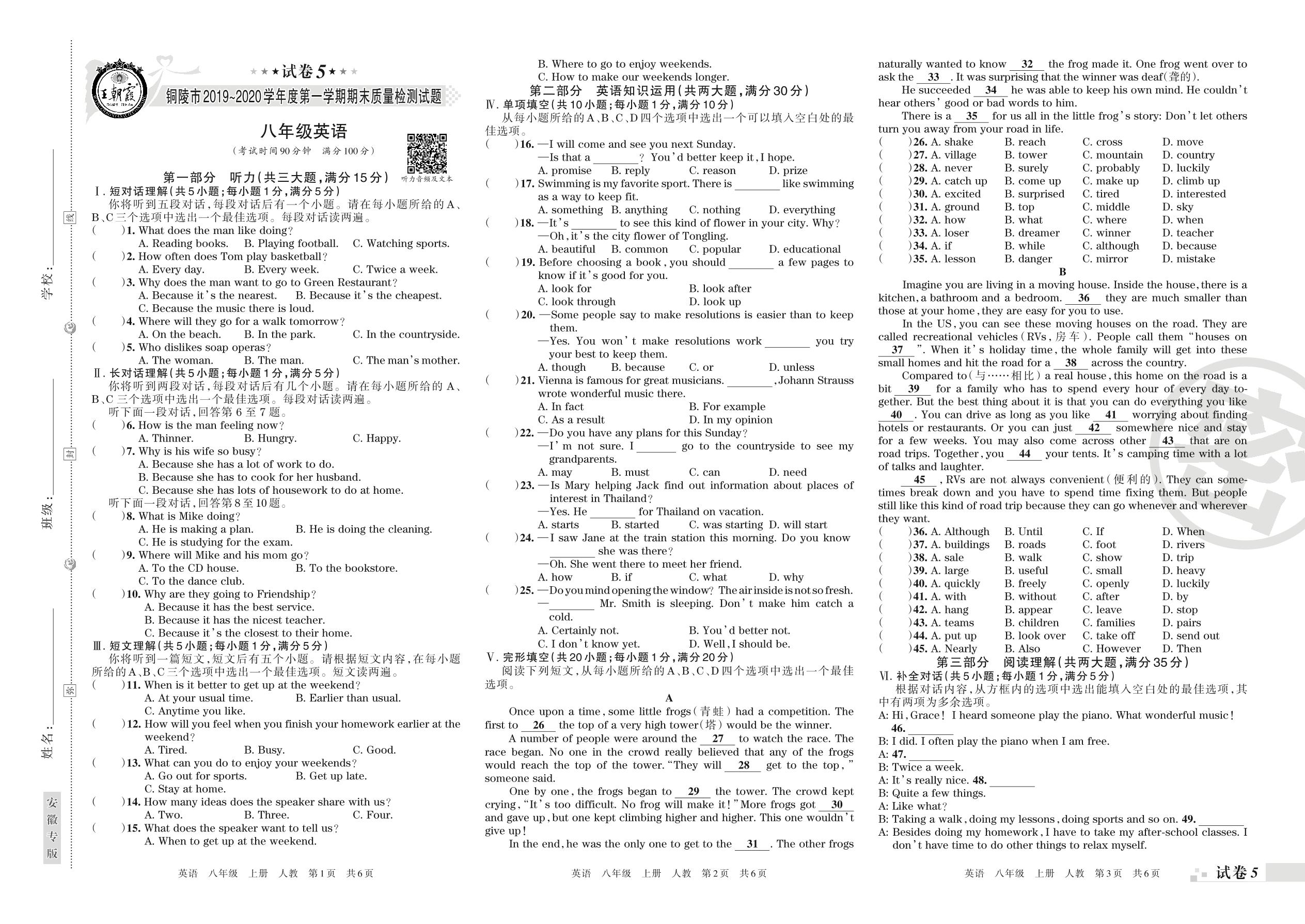 2019-2020学年第一学期铜陵市八年级英语试卷(人教版)【5】