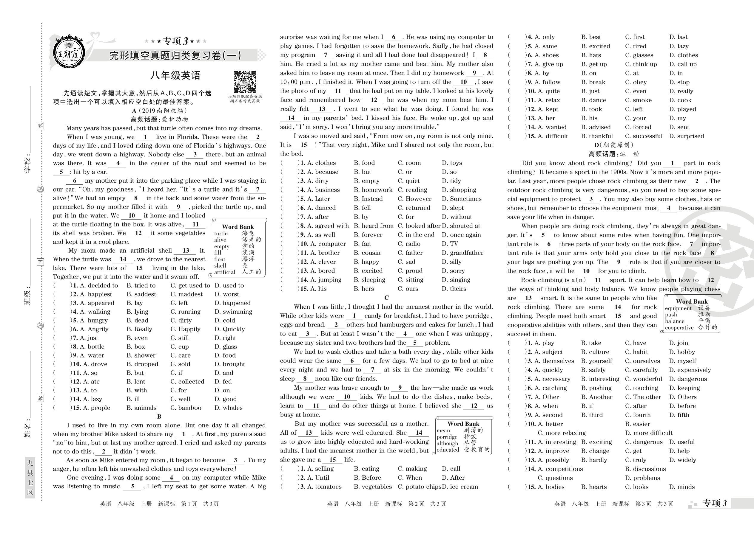 王朝霞期末专项卷——完形填空真题归类复习八年级上册英语(新课版)_R21080994805【0】