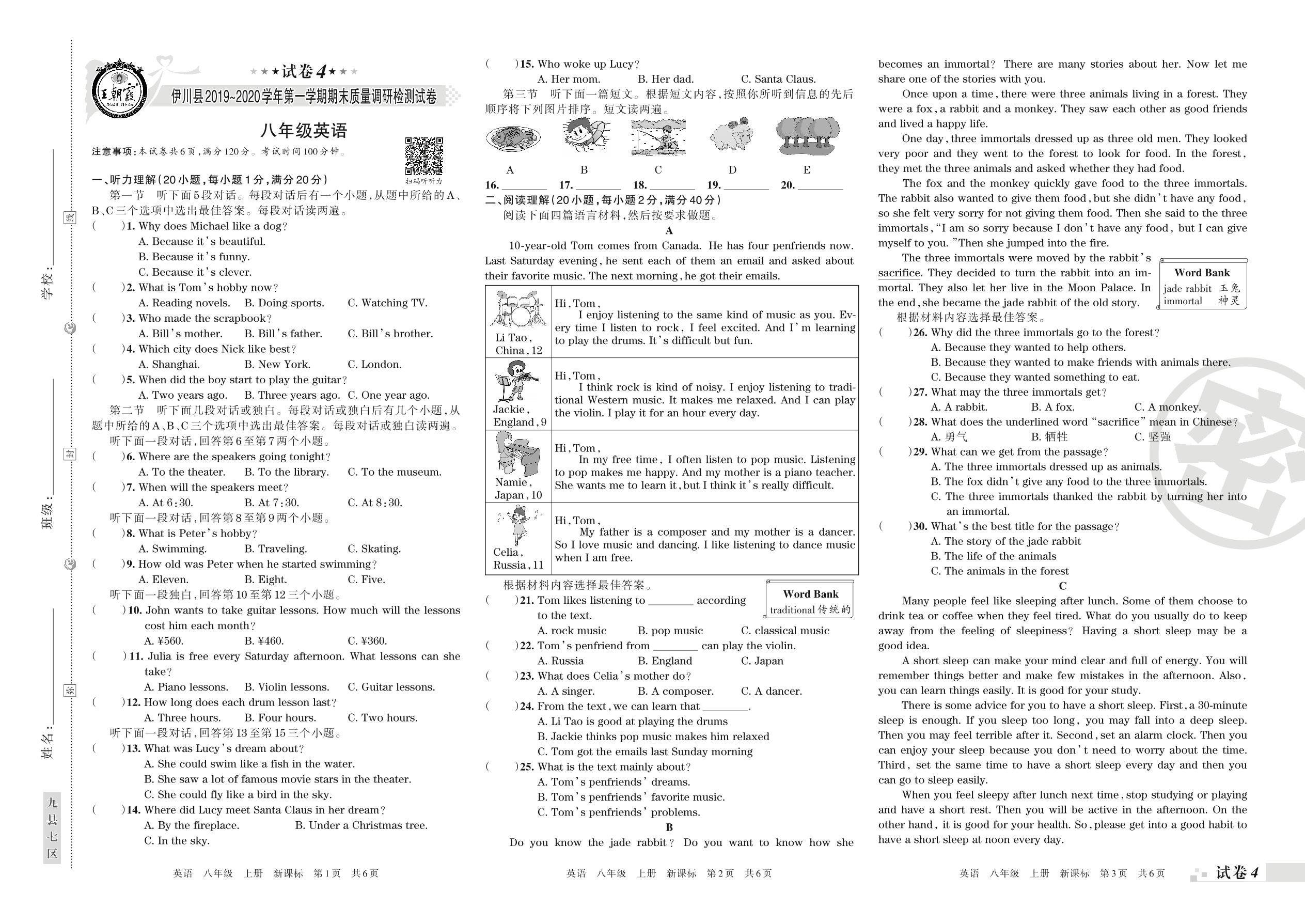 2019-2020学年第一学期洛阳市伊川县八年级英语试卷(新课版)【4】