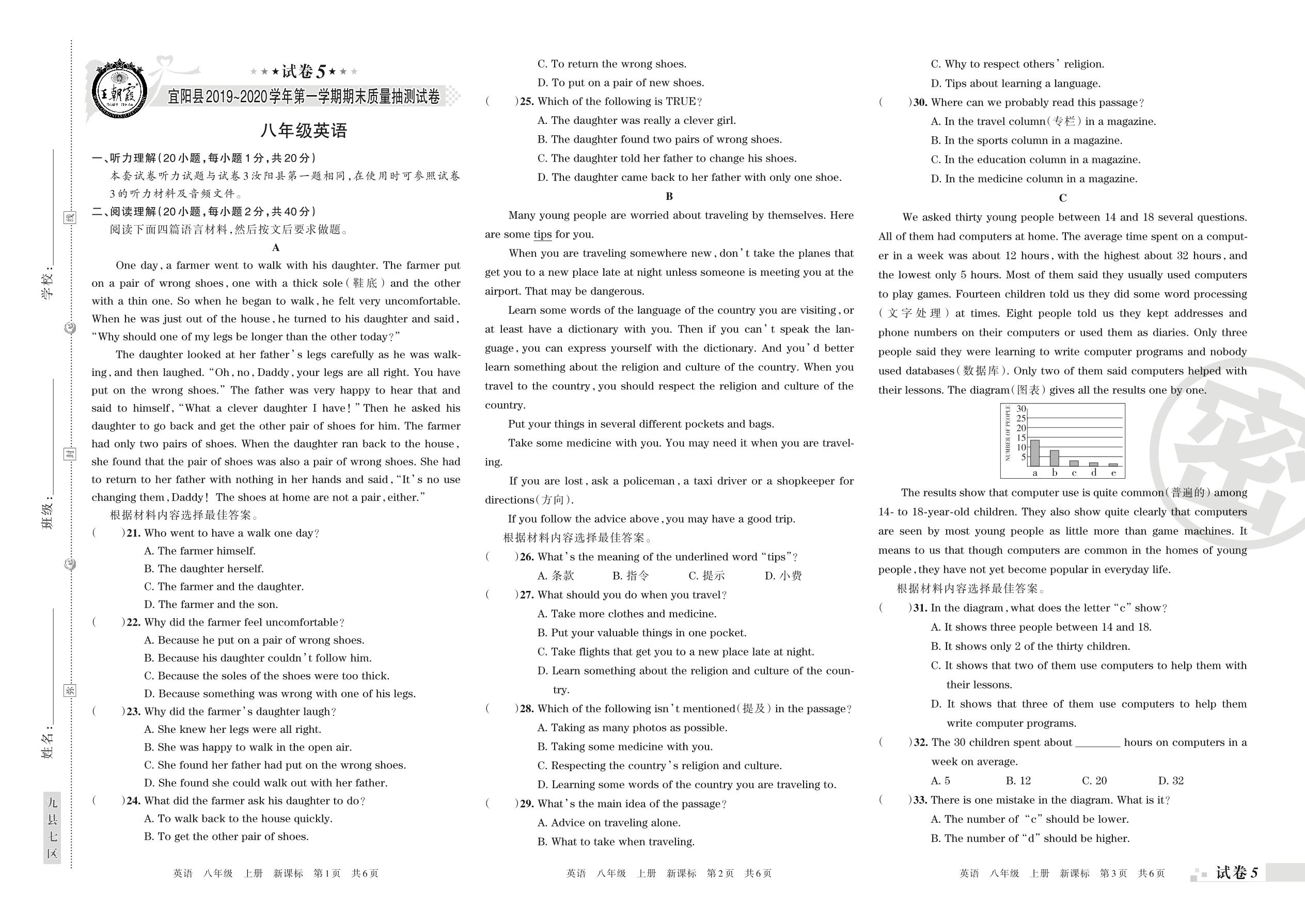 2019-2020学年第一学期洛阳市宜阳县八年级英语试卷(新课版)【5】