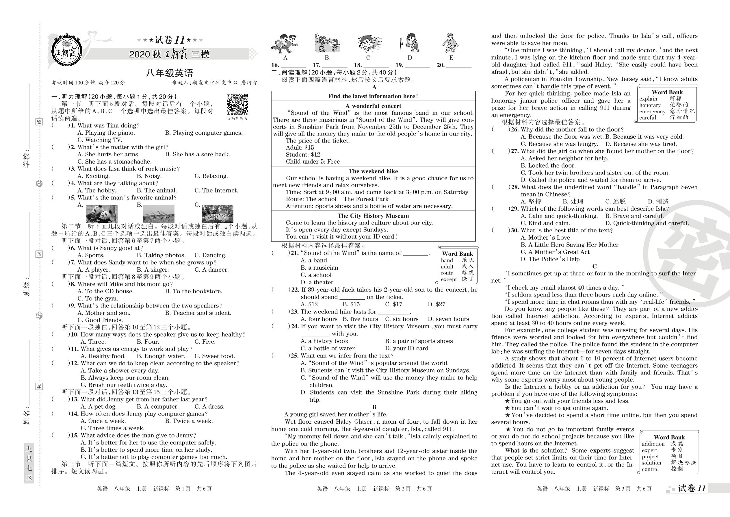 王朝霞期末模拟卷八年级上册英语(新课版)【11】
