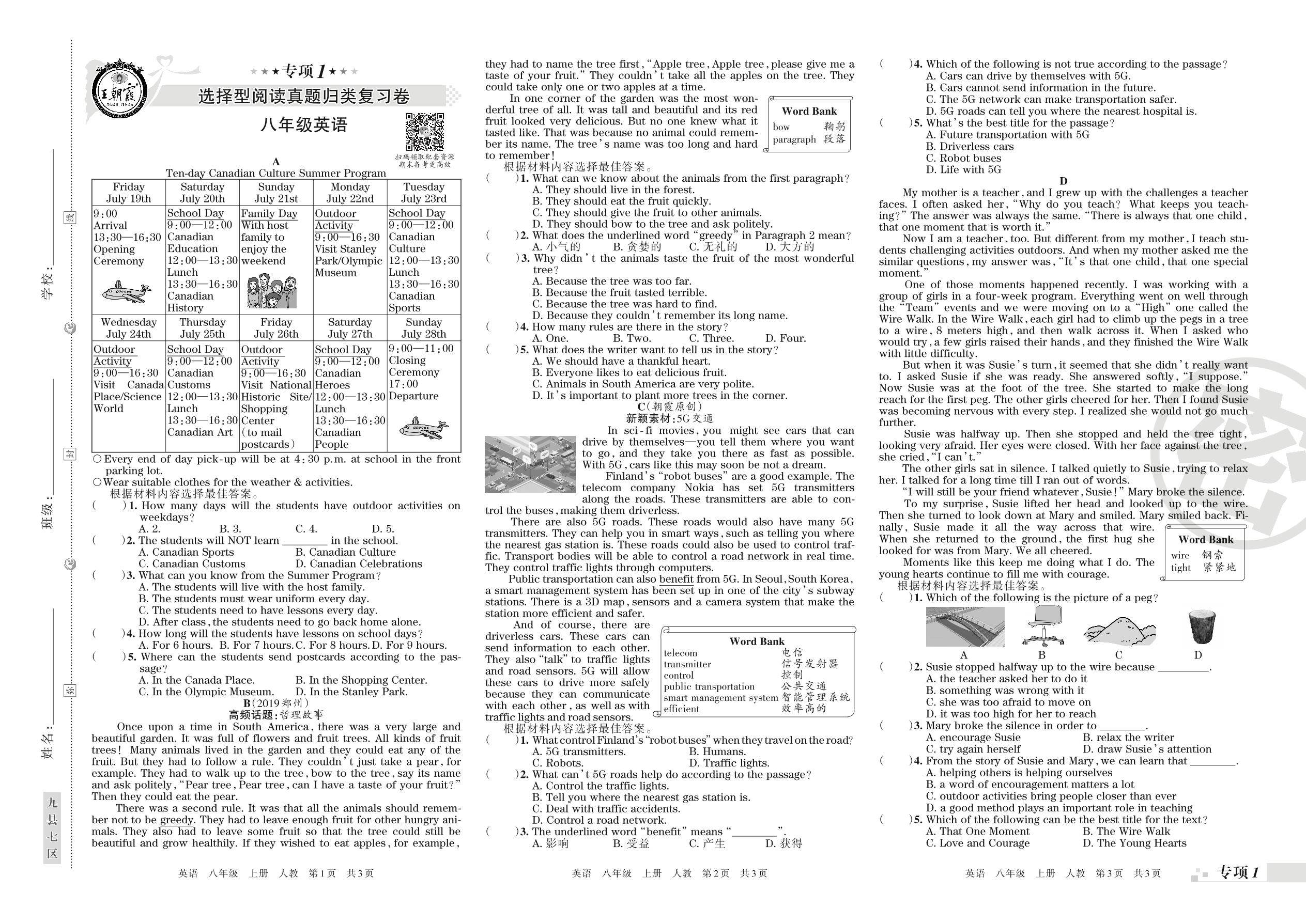 王朝霞期末专项卷——选择型阅读、任务型阅读真题归类复习八年级上册英语(人教版)_R21080995254【0】