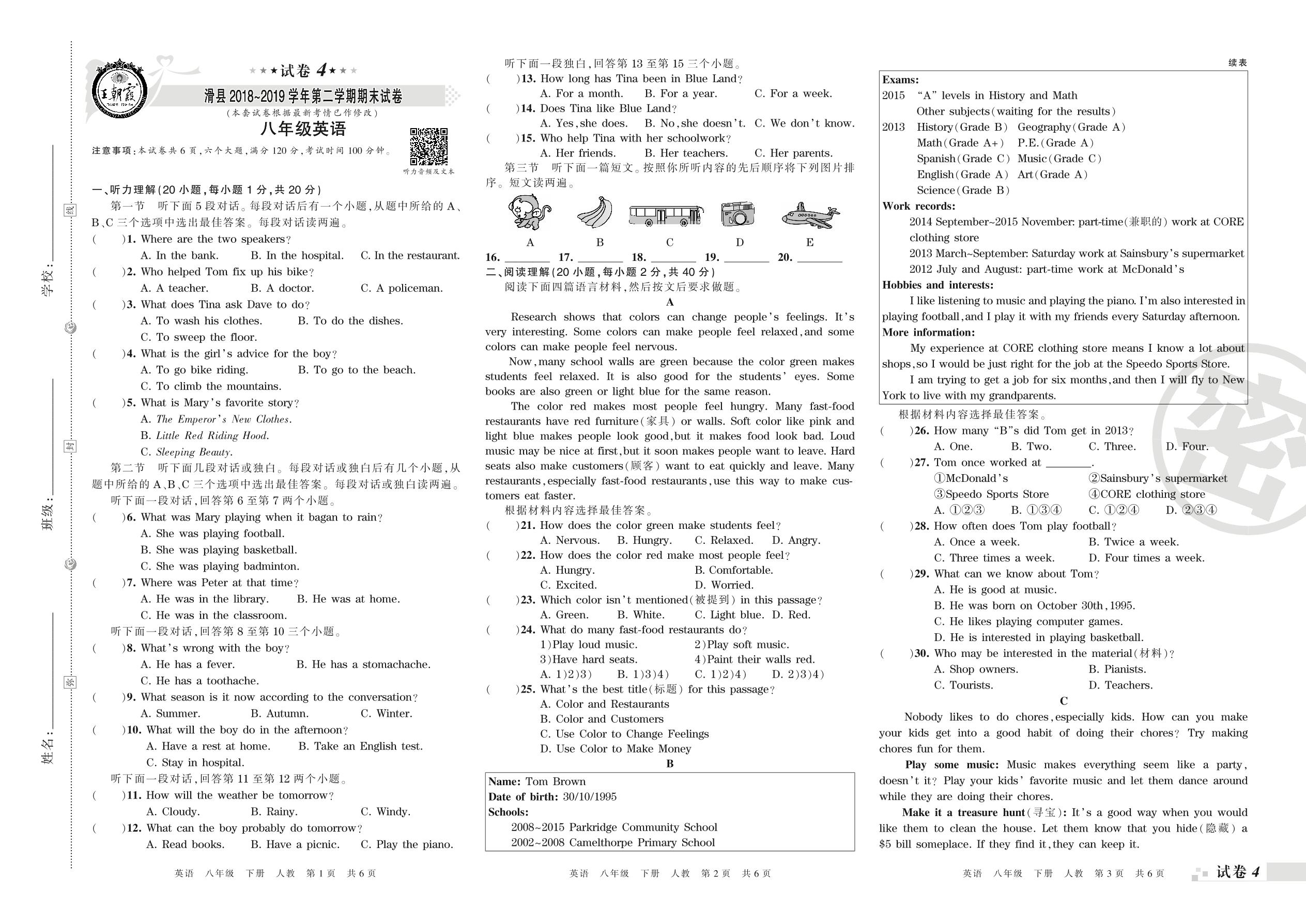 2018-2019学年第二学期安阳市滑县八年级英语试卷(人教版)【4】