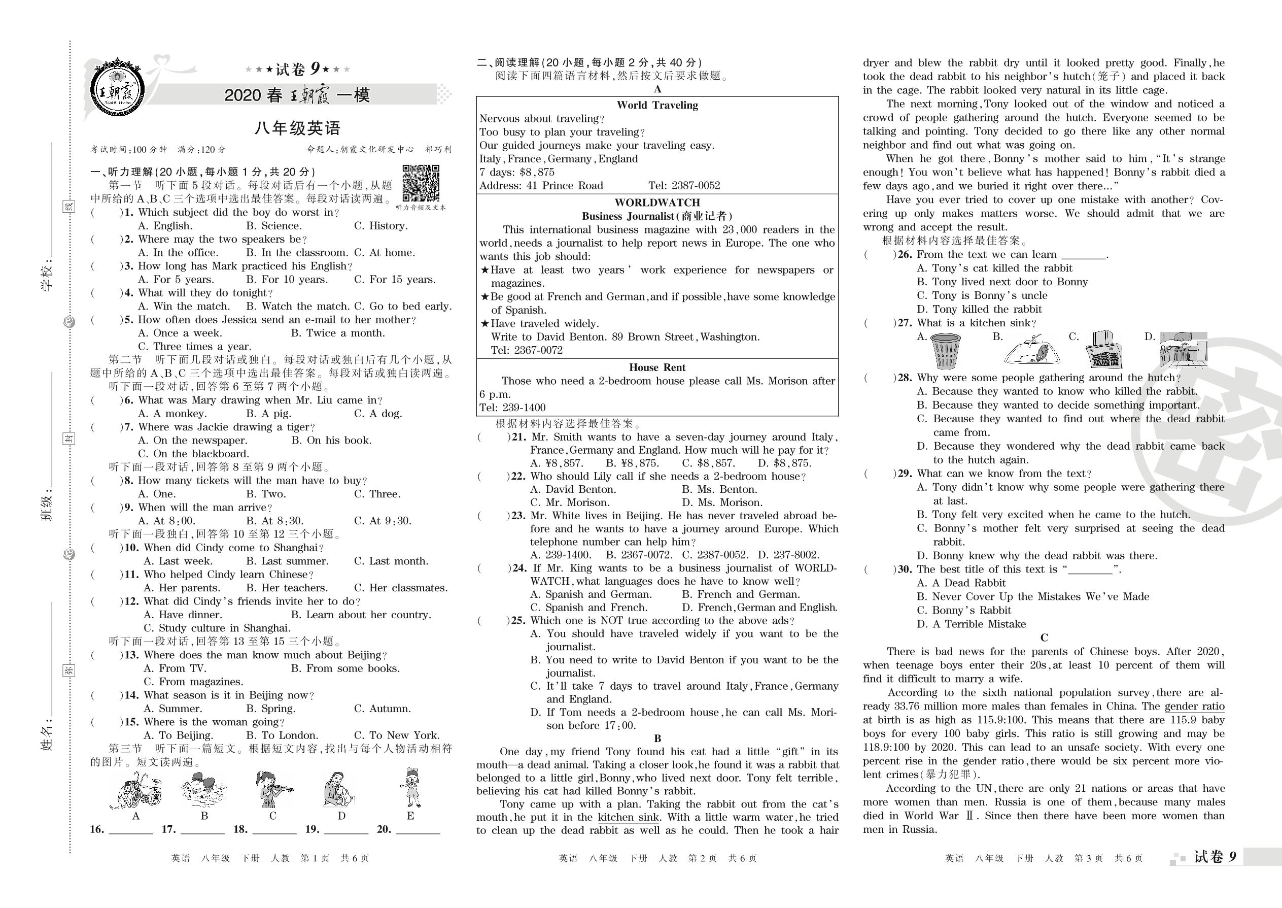 王朝霞期末模拟卷八年级下册英语(人教版)_R21080995920【9】