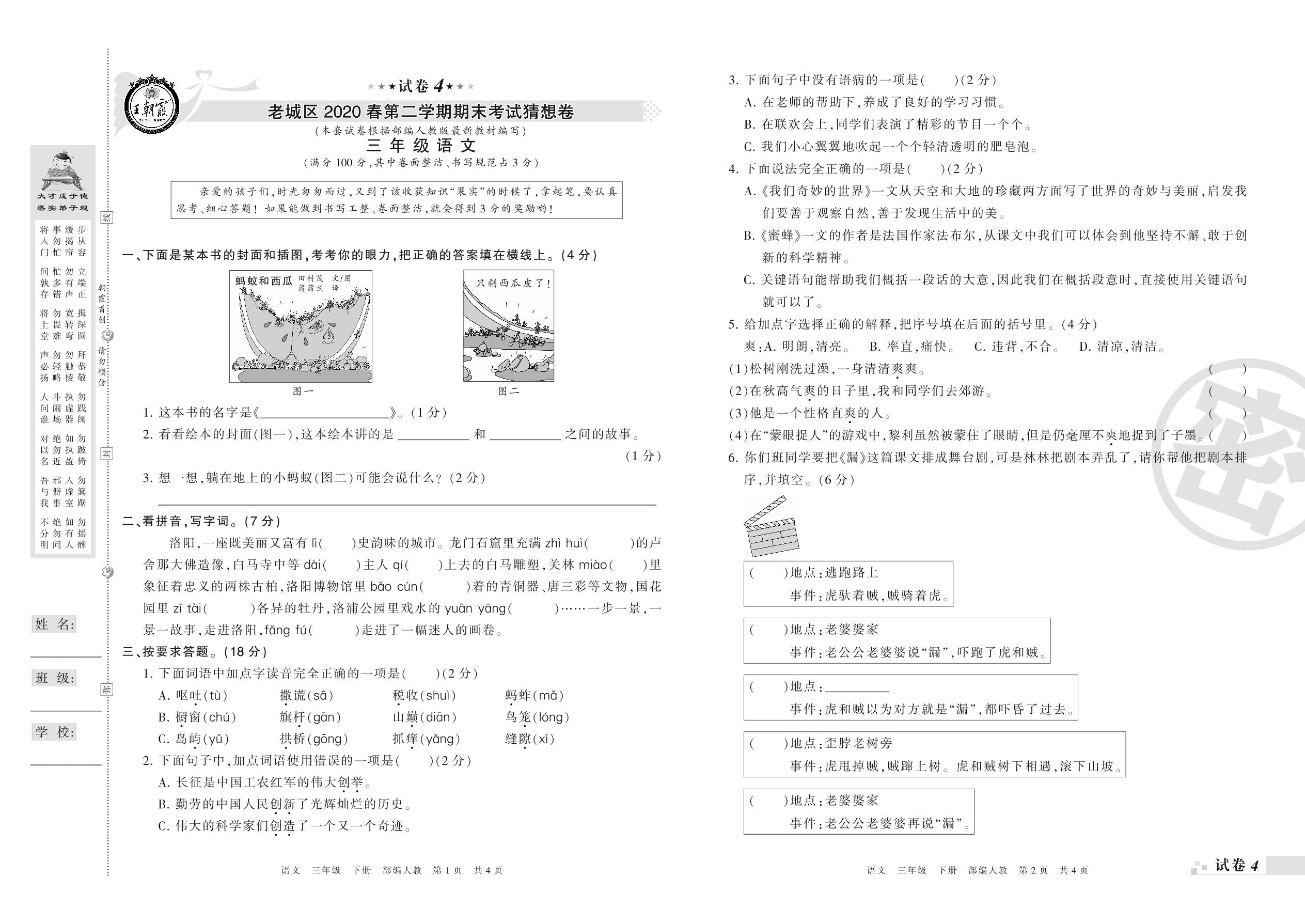 2018-2019学年第二学期洛阳市老城区猜想卷三年级语文试卷(人教版)【4】