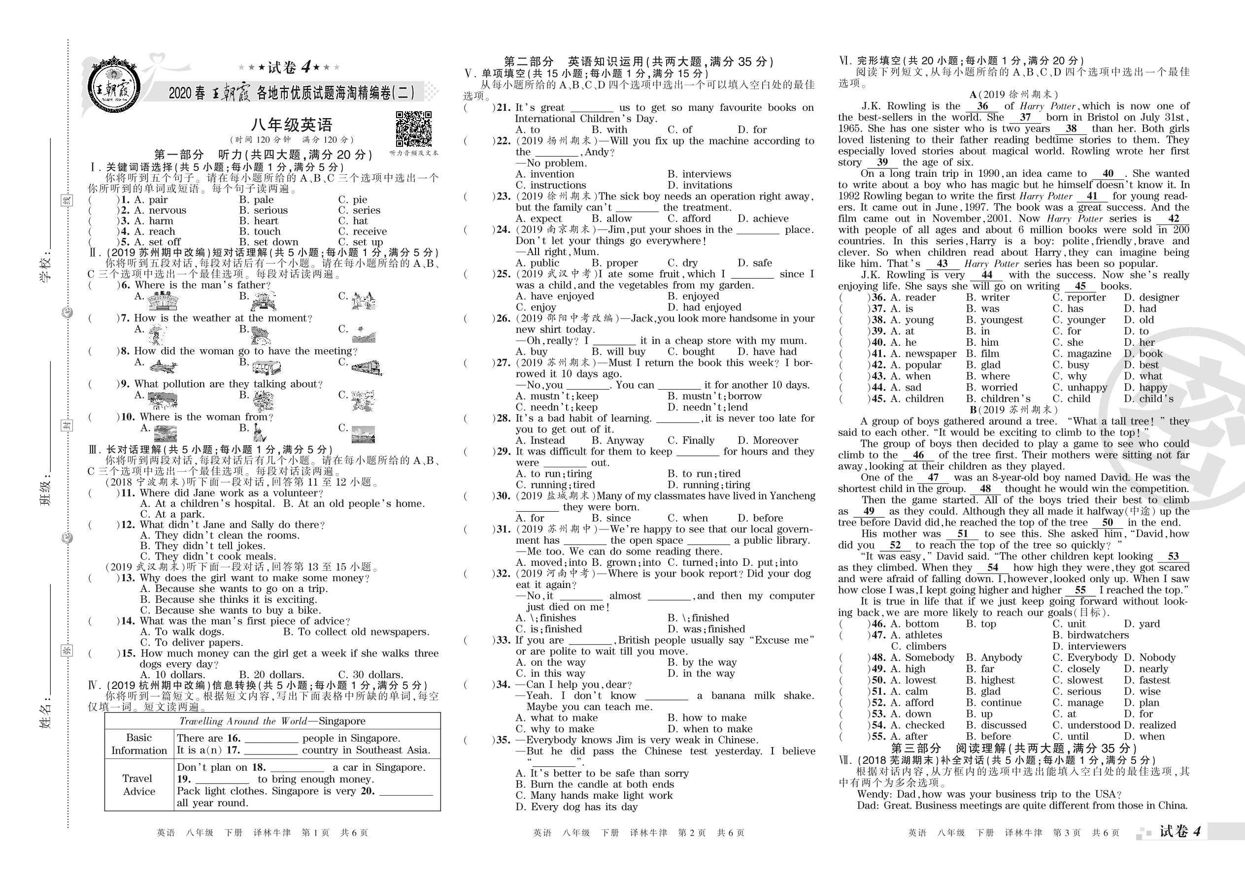 各地市优质试题海淘精编卷(二)八年级下册英语(译林版)_R210809100043【4】