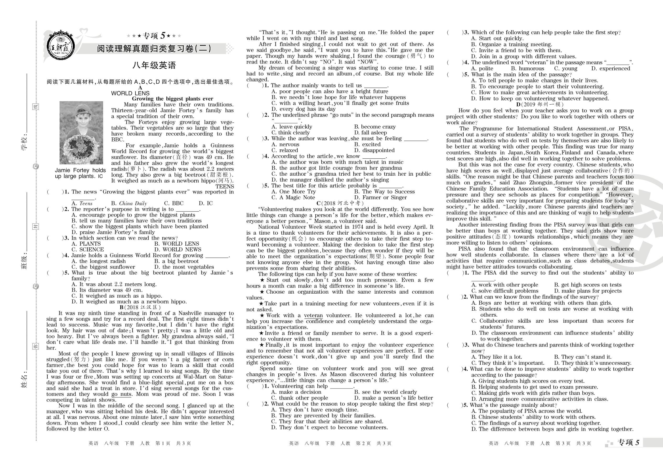 王朝霞期末专项卷——阅读理解(二)、词与短语填空真题归类复习卷八年级下册英语(人教版)_R210809100518【0】