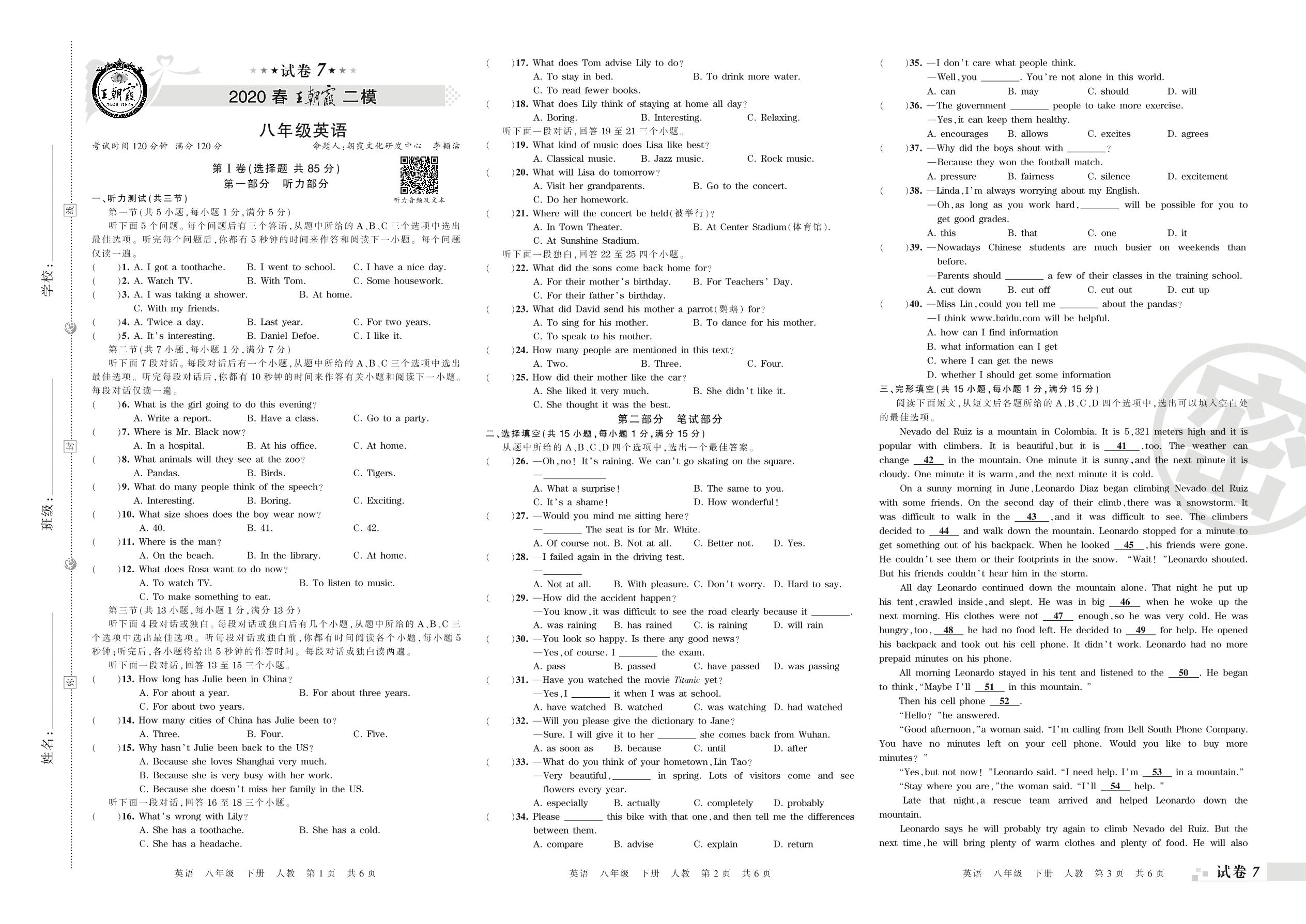 王朝霞期末模拟卷八年级下册英语(人教版)_R210809100636【7】