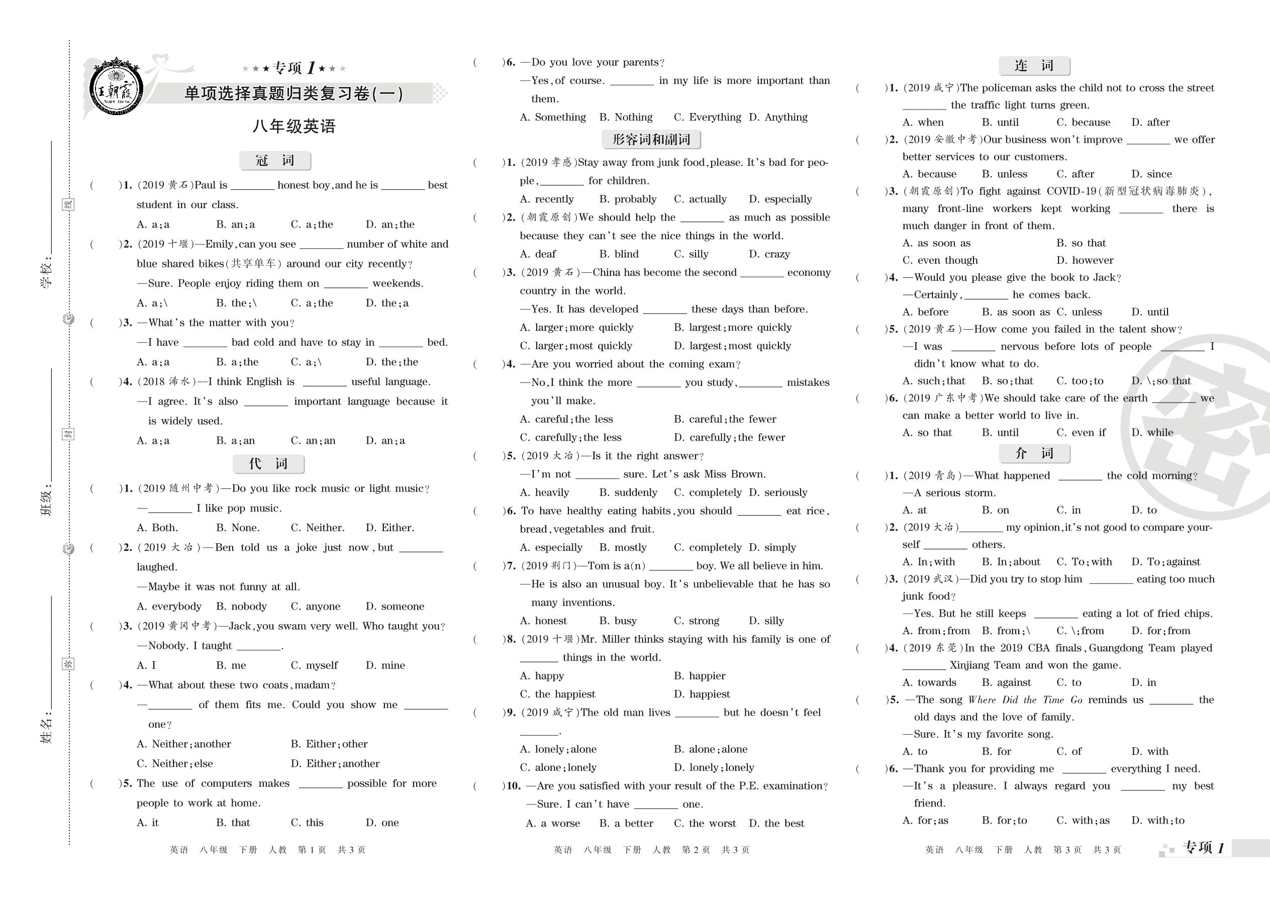 王朝霞期末专项卷——单项选择(一)(二)真题归类复习卷八年级下册英语(人教版)_R210809100659【0】