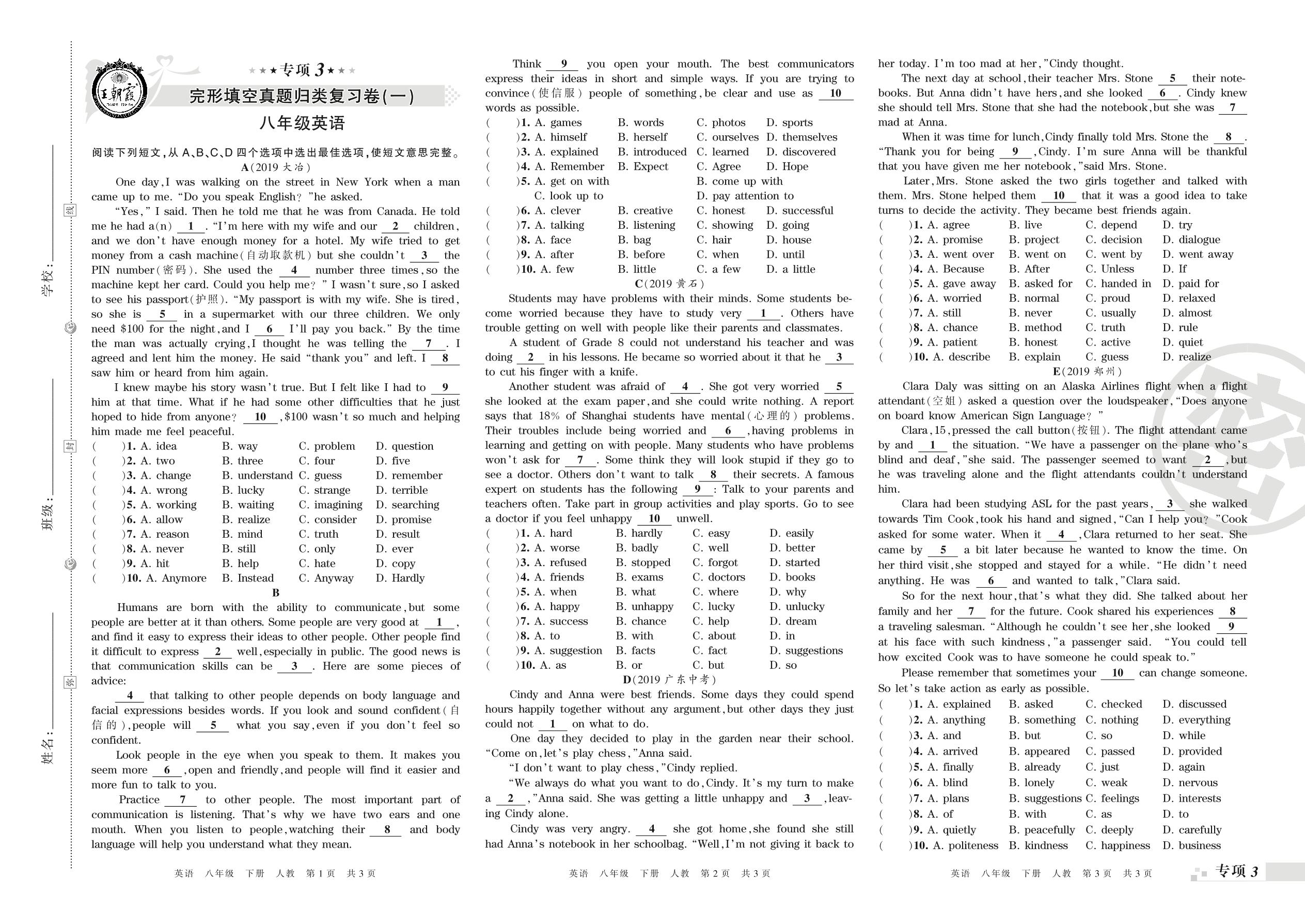 王朝霞期末专项卷——完形填空(一)(二)真题归类复习卷八年级下册英语(人教版)_R210809100708【0】
